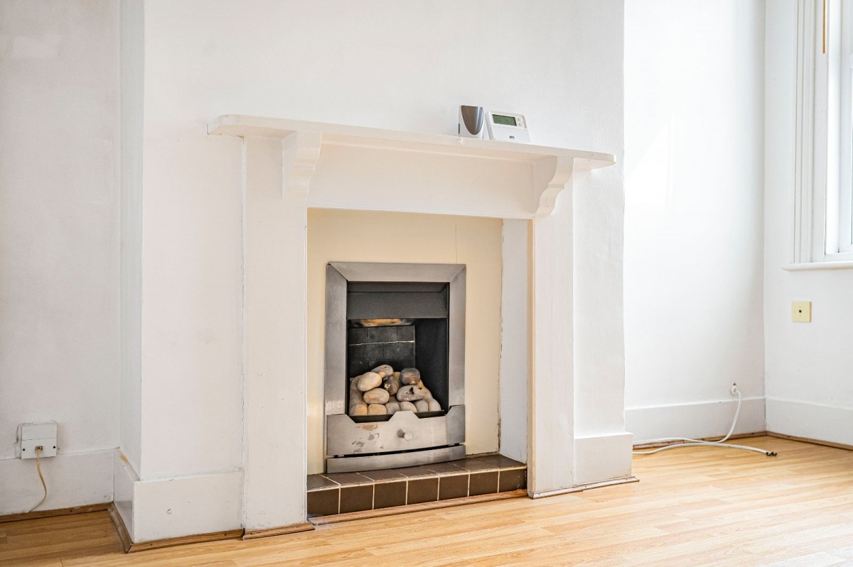 The accommodation is both well-proportioned and full of character, comprising a comfortable sitting room with feature fireplace, a generous bay-fronted double bedroom, also enjoying an attractive feature fireplace, a fitted kitchen, and a three-piece bathroom suite. To the rear, a useful lobby provides direct access out to the lovely enclosed garden, creating an ideal space to relax, entertain, or enjoy some outdoor privacy.