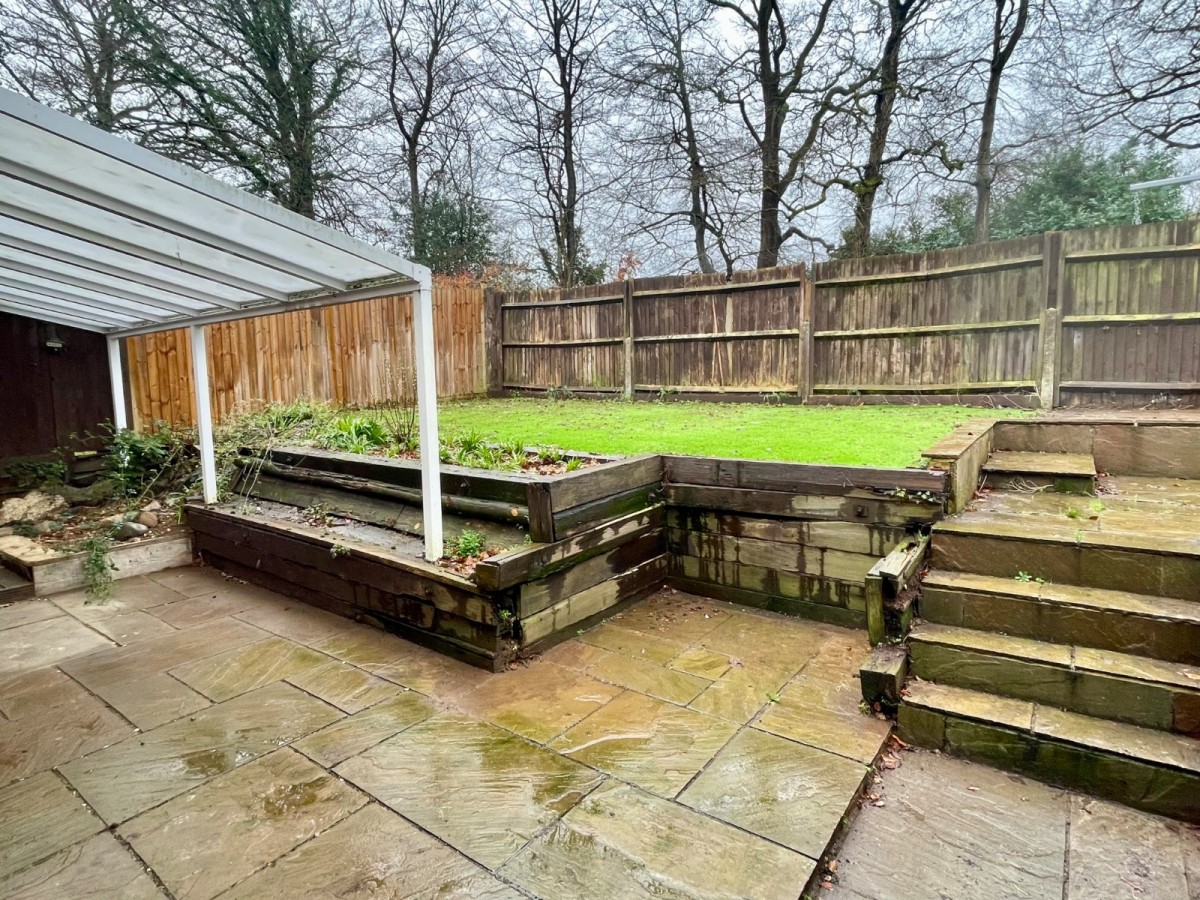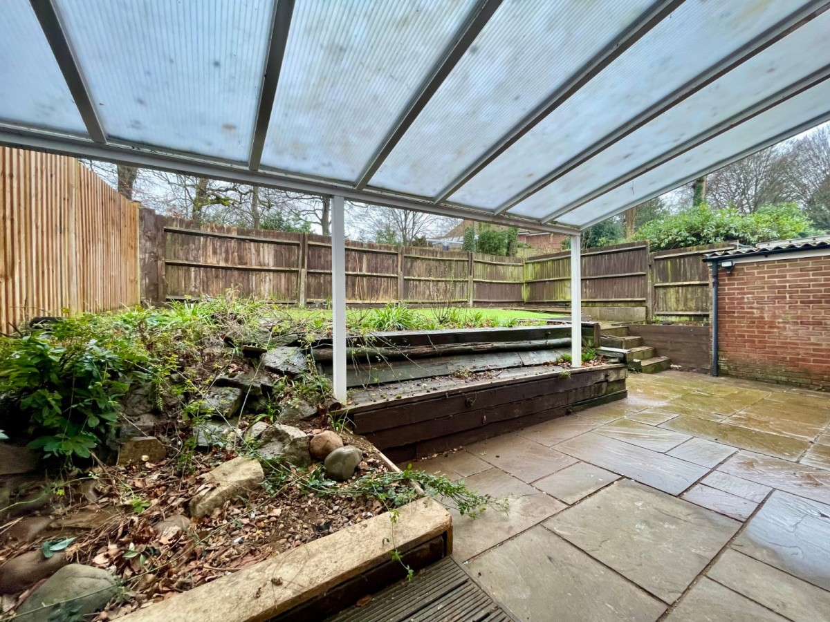 This well-presented home benefits from its own private garden, accessed directly from the living room. The outdoor space features a covered paved patio area, an external garden shed, and steps leading up to a generous area of low-maintenance artificial lawn. The garden is fully enclosed, providing privacy and security, with a convenient gate offering access back to the front of the property.