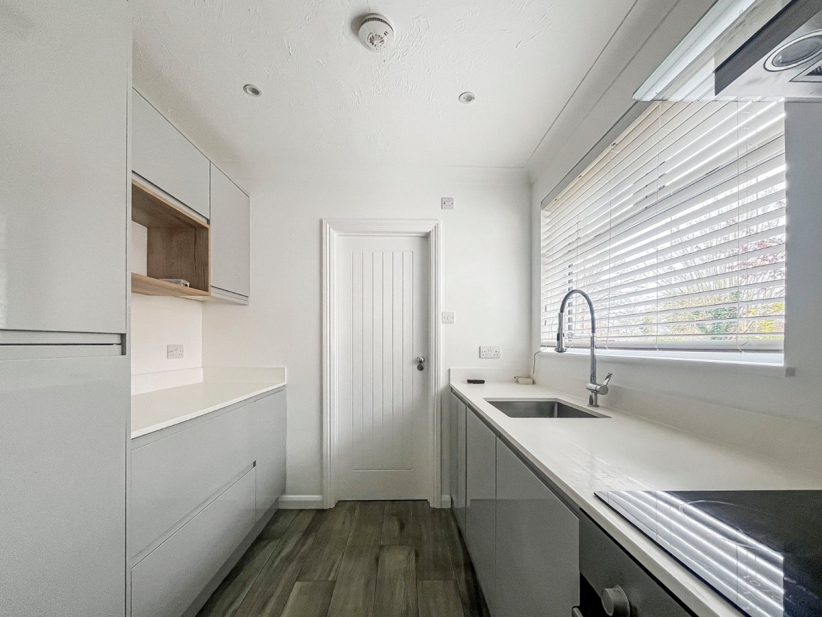 The accommodation is well balanced, with a comfortable double bedroom featuring an alcove ideal for wardrobe space. The kitchen is modern in design, fitted with sleek gloss units at both eye and base level, new integrated appliances, an induction hob and ample storage. The bathroom is equally well appointed, finished, fully tiled and finished in a contemporary style with a shower and vanity unit.