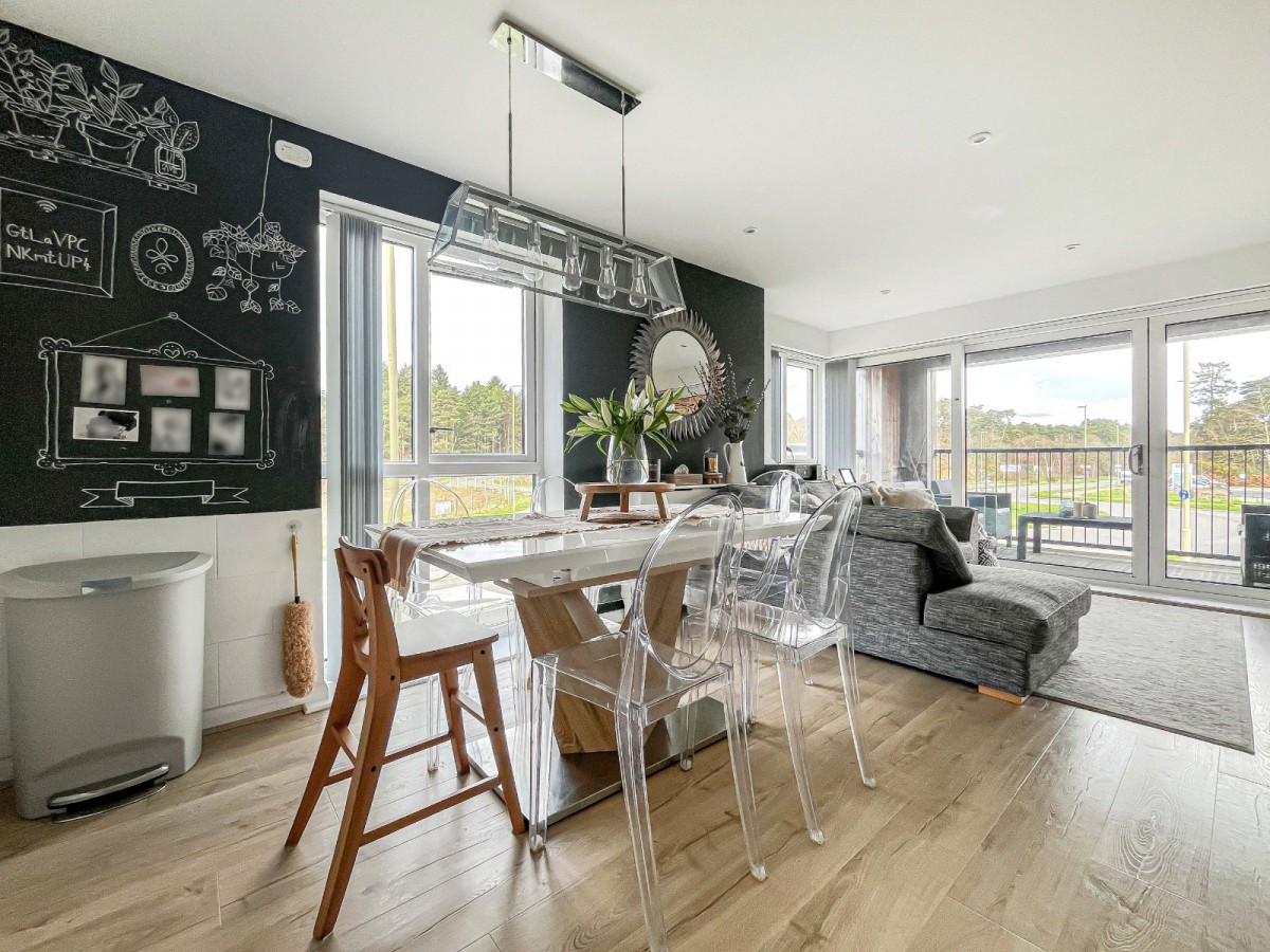 The flat sits within easy reach of Bordon Enclosure’s woodland, just a short walk away, and the town centre is around a four-minute drive. The A3 is accessible within ten minutes, and Liphook and Bentley stations are both within five miles.