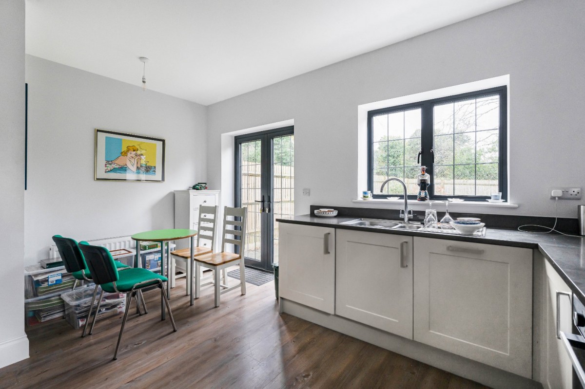 The property includes an entrance hall, sitting room with Karndean flooring, a smart kitchen/diner with integrated appliances and patio doors to the garden, plus a downstairs cloakroom.
