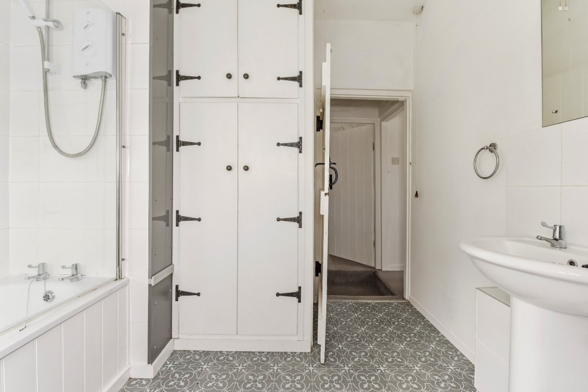 Upstairs, the principal bedroom is generously sized and benefits from built-in wardrobes as well as views across the local scenery. The second bedroom is versatile and would suit use as a guest room, home office or study. The family bathroom is well presented and fitted with a bath with Mira electric shower over (installed 2022), along with a useful airing cupboard.