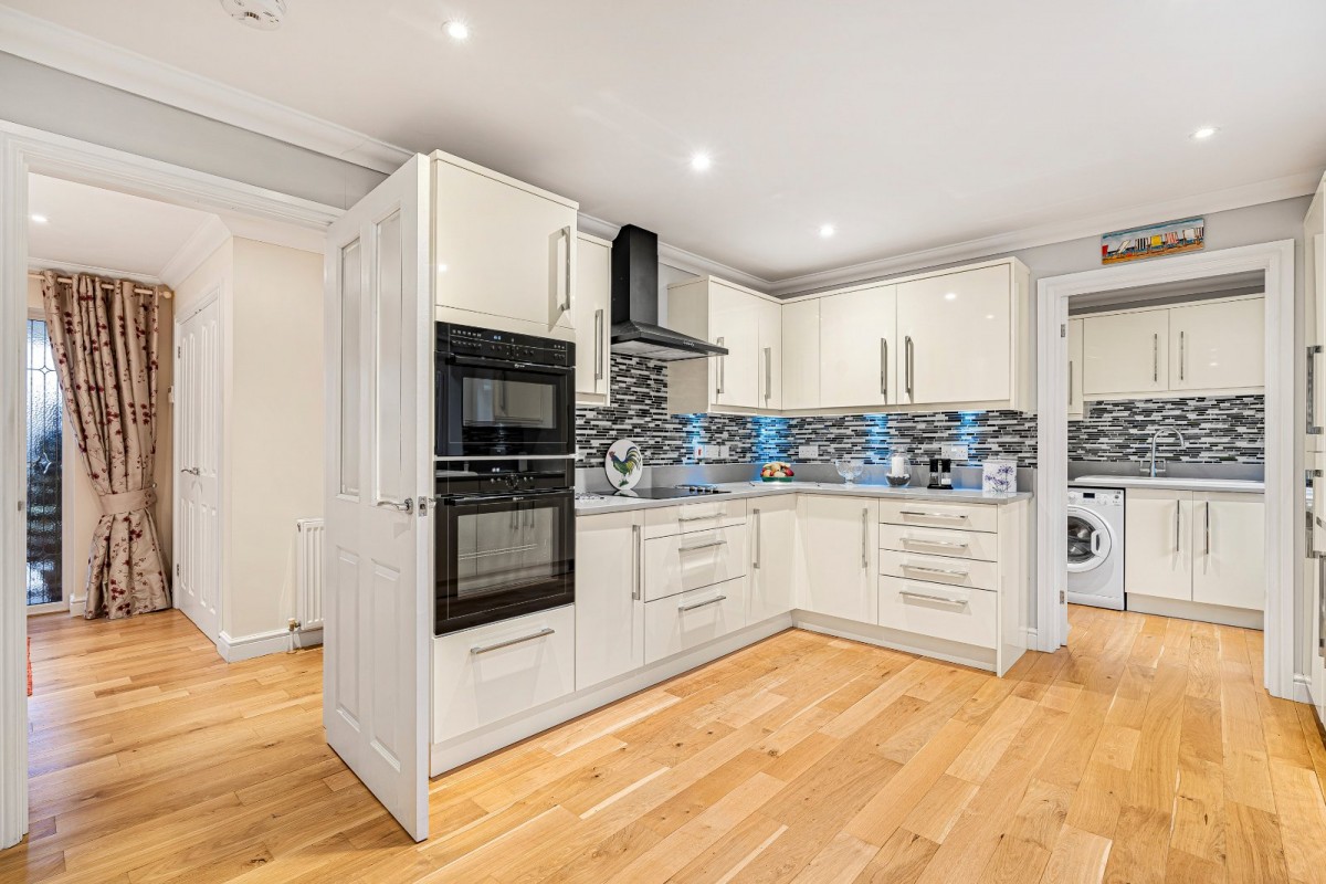 At the heart of the home is a luxurious open-plan kitchen / breakfast room, perfectly suited to both everyday living and entertaining. This superb space is complemented by a welcoming living room featuring a log-effect gas fire, which flows into the separate dining room, creating a warm and sociable layout.