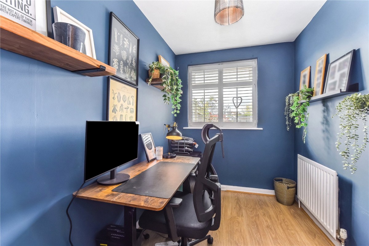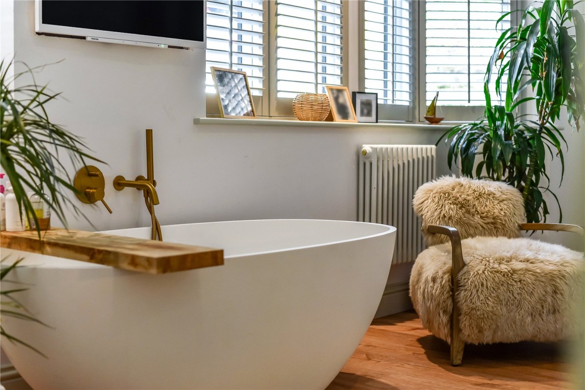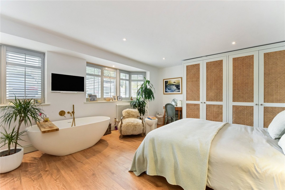 The ground floor also benefits from a well-appointed shower room and a versatile study, which could serve equally well as a fourth bedroom if required. The principal bedroom suite is also located on this level, offering both practicality and luxury. This exceptional room has the feel of a boutique retreat, featuring built-in wardrobes, a freestanding bath and a beautifully appointed ensuite shower room finished to a high standard.