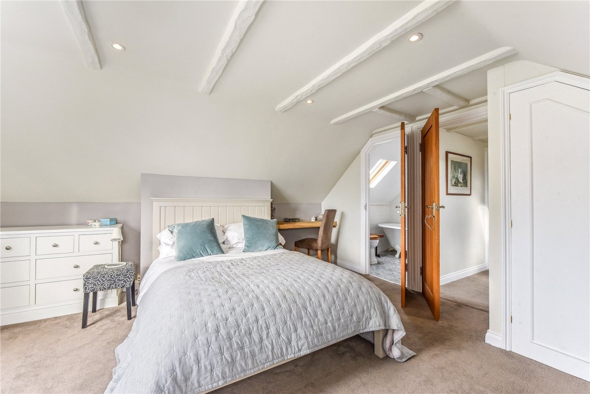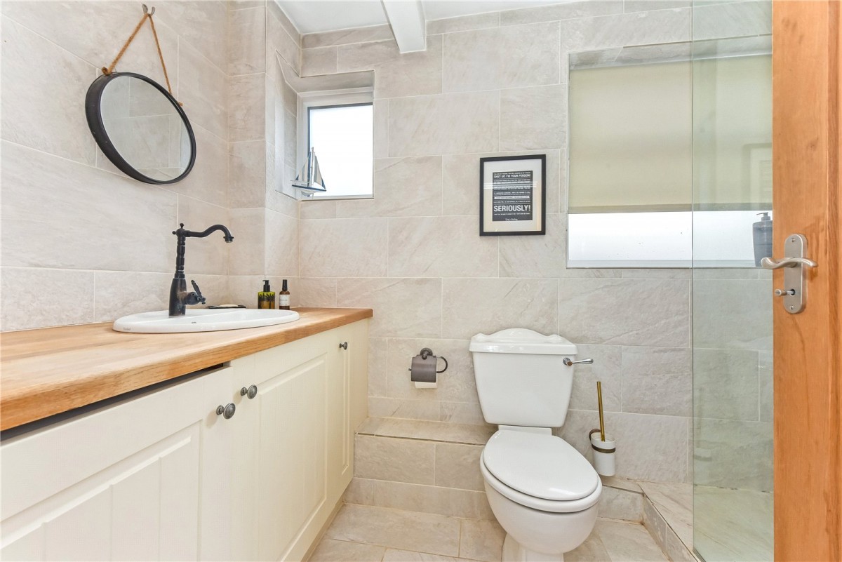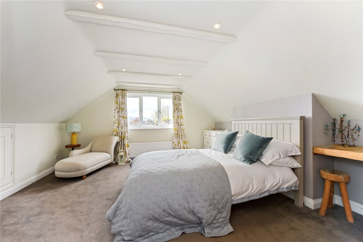 Upstairs, two further double bedrooms provide comfortable accommodation for family or guests together with eaves storage. The rear bedroom enjoys far-reaching views towards Butser Hill and benefits from a stylish ensuite shower room, while the second bedroom offers generous proportions and plenty of natural light.