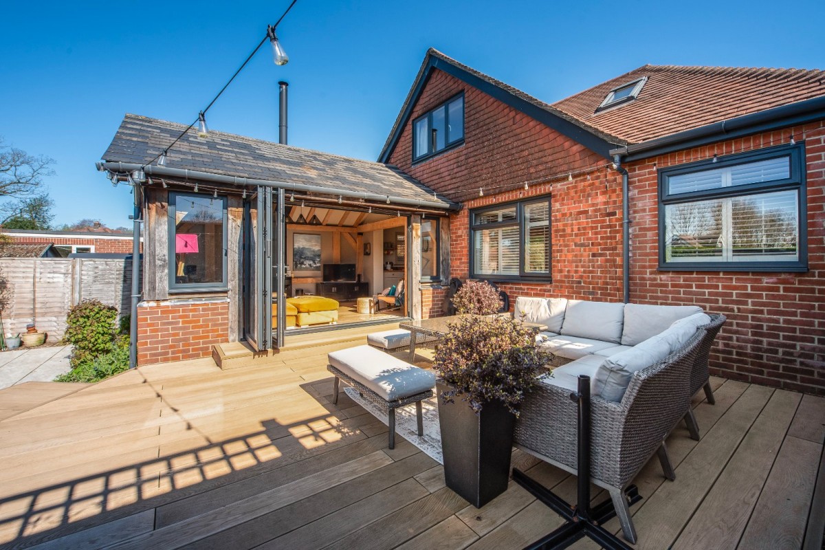 A fantastic opportunity to acquire this deceptively spacious and beautifully presented detached chalet-style bungalow, ideally located within walking distance of Petersfield town centre and the mainline station. Tucked away in a peaceful cul-de-sac on the fringe of the town, this wonderful home combines elegant modern living with characterful features, highlighted by a stunning oak-framed rear extension that adds warmth, charm and architectural appeal.