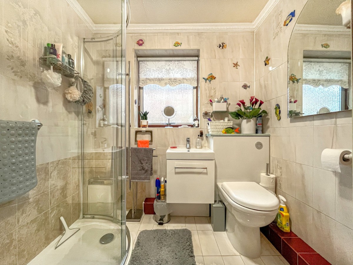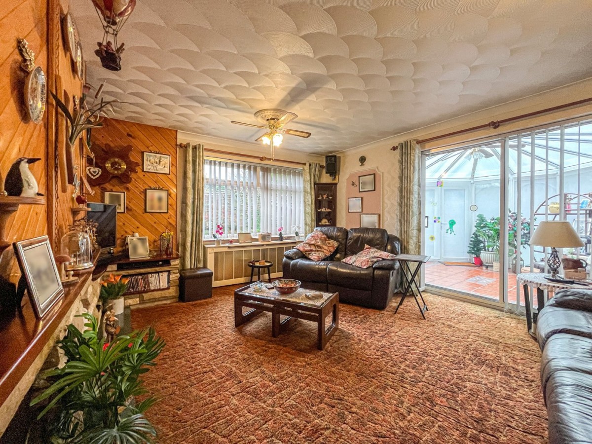 On entering, you are greeted by a sitting room with a feature fireplace, which flows seamlessly into a bright conservatory, creating a welcoming space to relax or entertain. The heart of the home is the spacious open-plan kitchen/dining area, ideal for family life, complemented by a utility room with direct access to the garden. There are three well-proportioned bedrooms and a shower room, providing practical and comfortable accommodation.