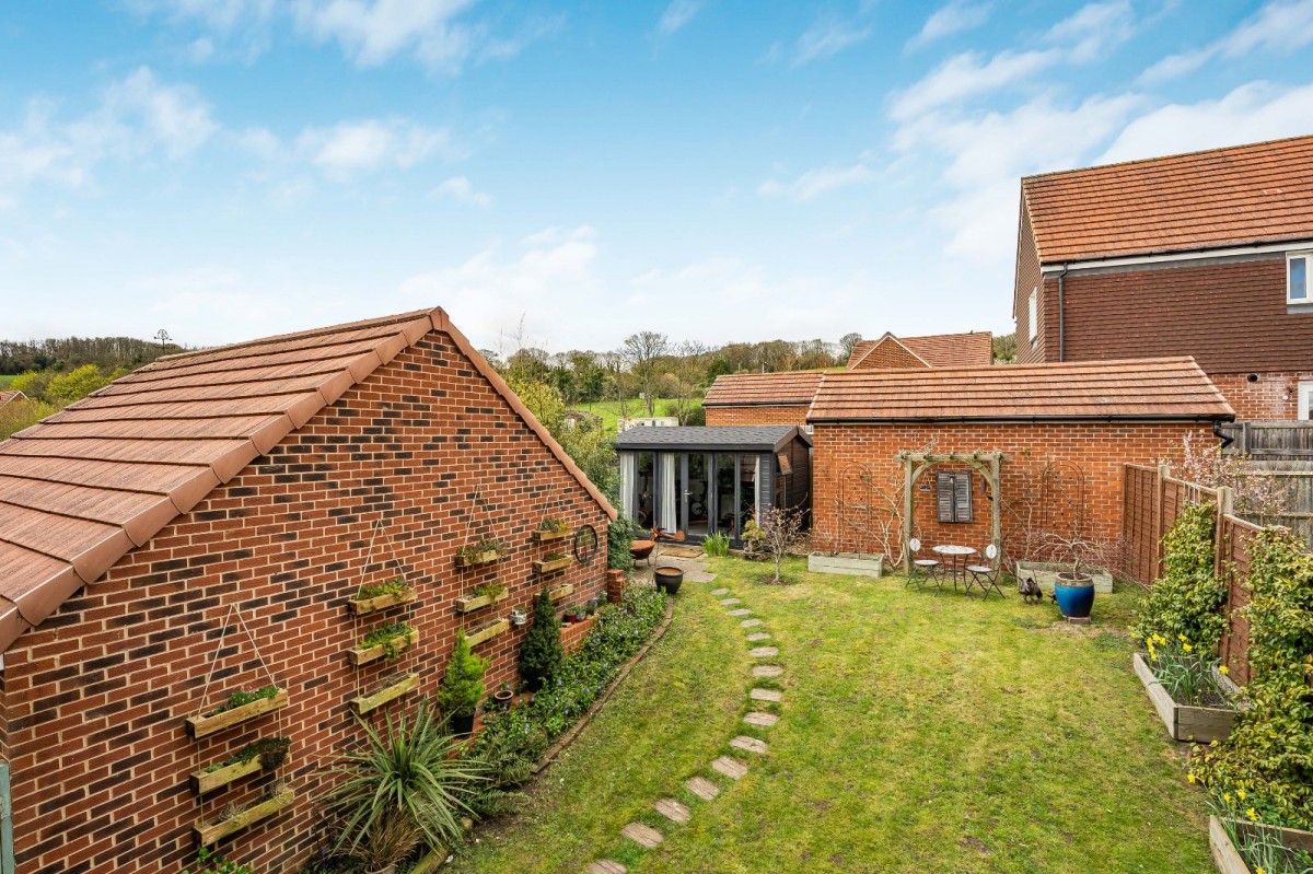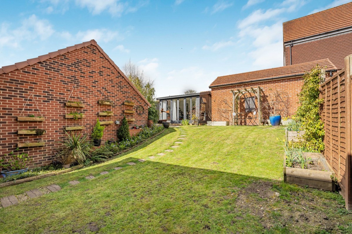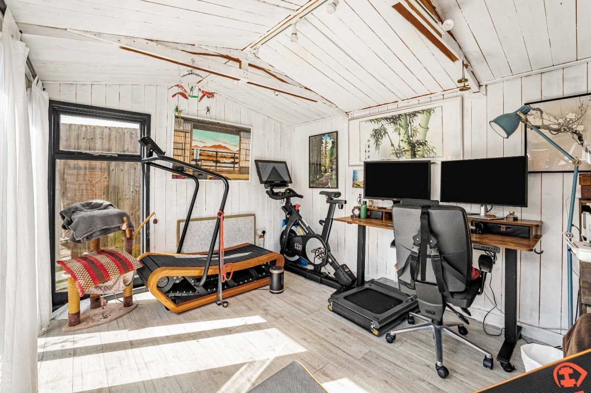Externally, the home continues to impress. The rear garden is predominantly laid to lawn, providing a generous and versatile outdoor space ideal for families, entertaining, or simply relaxing. It also benefits from a garden office, perfect for remote working or creative use. To the front, there is driveway parking for two vehicles alongside a garage, providing additional storage or secure parking.