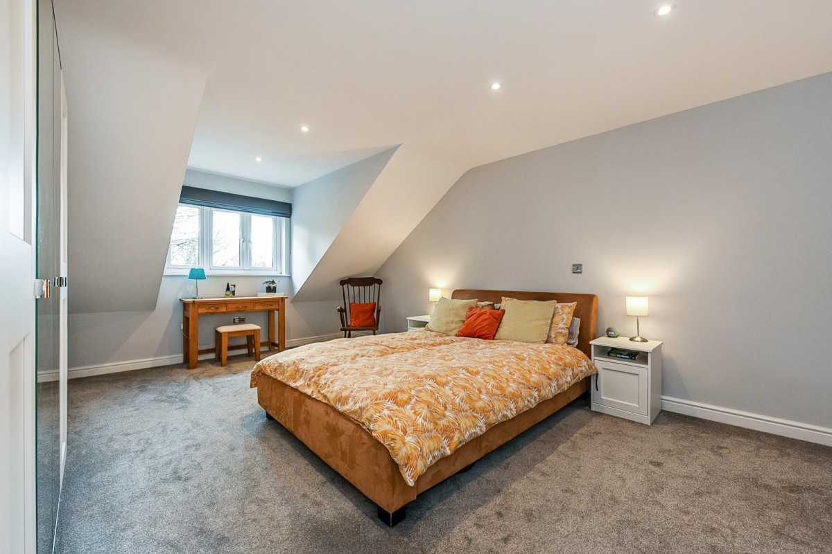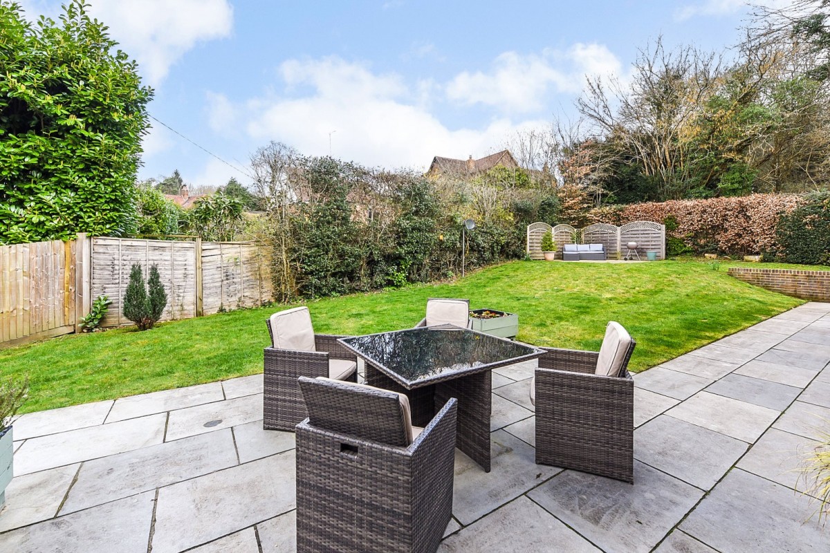 The rear gardens enjoy a high degree of privacy, being enclosed by a mixture of mature shrubbery and panel fencing. The well-kept lawns lead to a rear suntrap seating area. A rear pedestrian door provides access to the larger than usual garage with an electric door, with remote control key fobs and an internal controller.