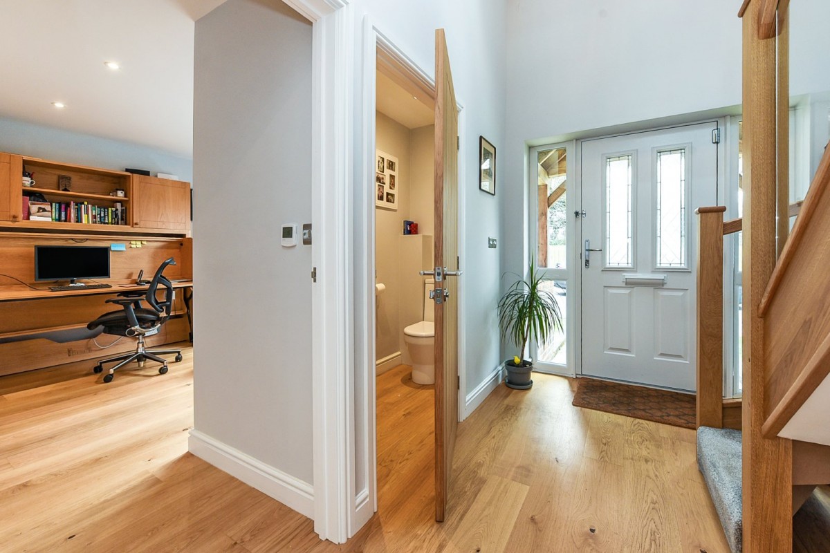 A well-sized office/study, located to the front of the home offers functionality and flexibility, being large enough to be utilised as a further guest room. The downstairs accommodation is completed by a handy utility room, with plumbing for appliances and a cloakroom.