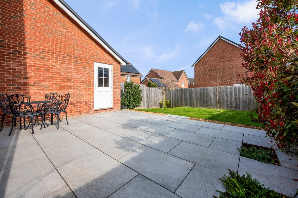 The rear garden is a private garden that is fully enclosed by panel fencing. A well kept lawn has a variety of trees and bushes inset and there is a good size patio between the lawn and the house.
