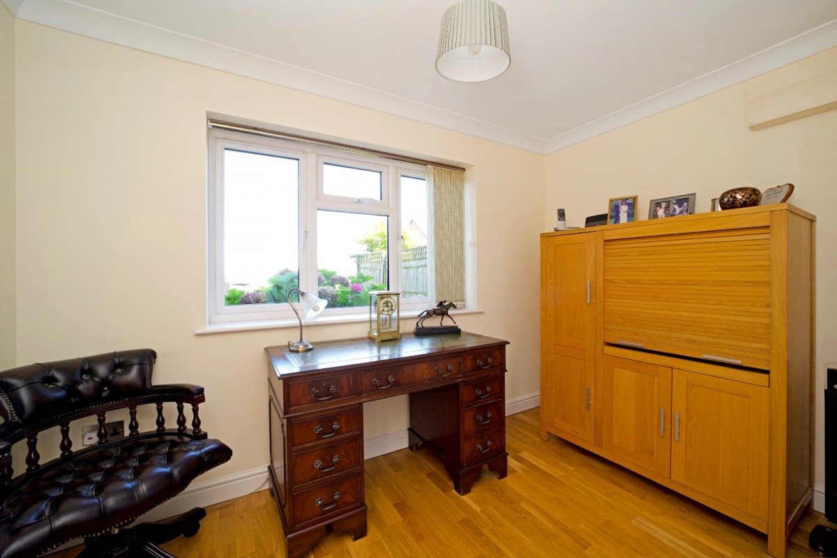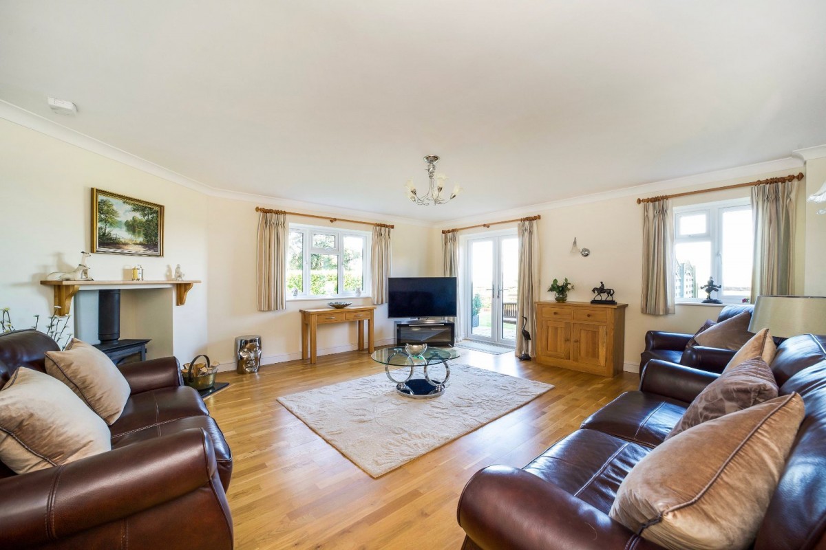 The accommodation is bright and spacious. The entrance hall has doors to the expansive kitchen/dining room with high gloss cream cabinets with integrated appliances, cosy sitting room with log burning stove and beautiful countryside views, study providing the ideal working from home space and cloakroom. Features include underfloor heating to the ground floor, UPVC double glazing and oak internal doors throughout.