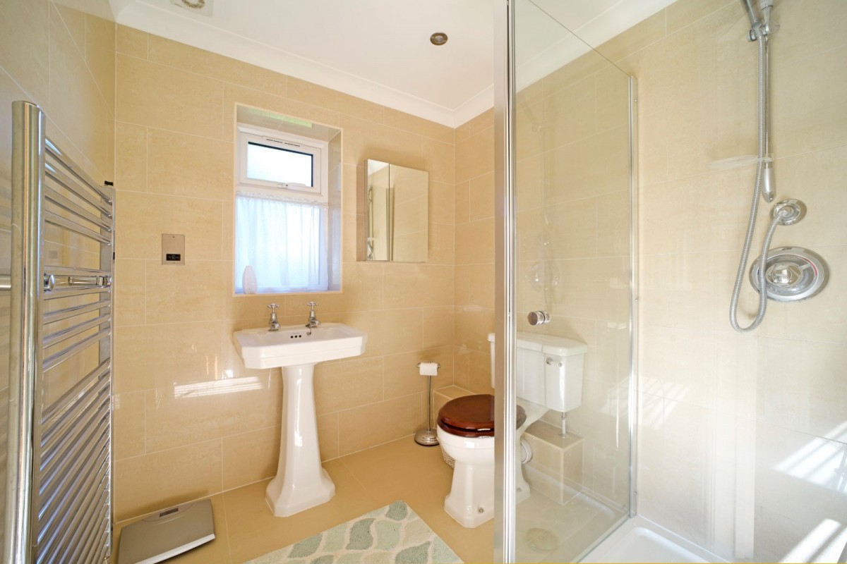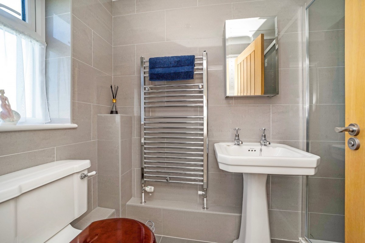 Upstairs are three comfortable bedrooms; all having fitted wardrobes with the main and second bedrooms both featuring en-suite shower rooms. In addition there is a family bathroom.