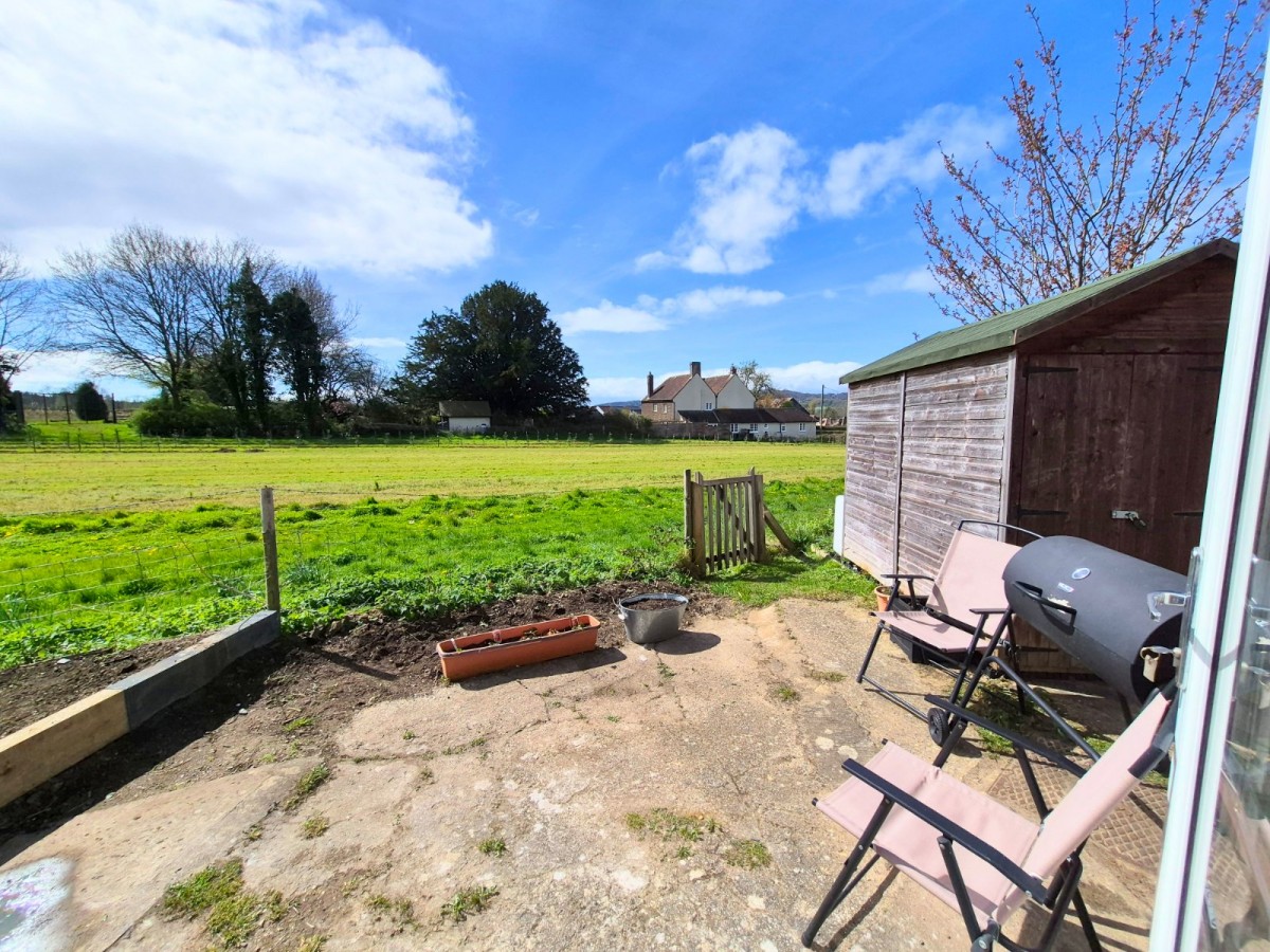 Upstairs, the principal bedroom includes a built-in cupboard, while the second bedroom enjoys open views across the nursery land and boasts extensive storage with a triple wardrobe and additional double cupboard. The third bedroom overlooks the garden, offering a peaceful retreat.