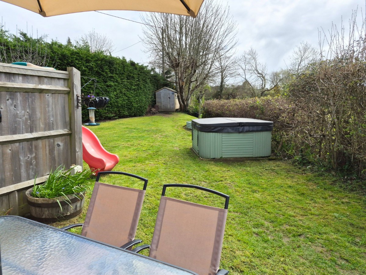 Outside, the property continues to impress. To the front, there is off-road parking for up to three vehicles. The rear garden is mainly laid to lawn, enclosed by mature hedging for privacy, and features a generous patio area — perfect for alfresco dining and entertaining. Two sheds and a hot tub are also included, adding to the lifestyle appeal.
