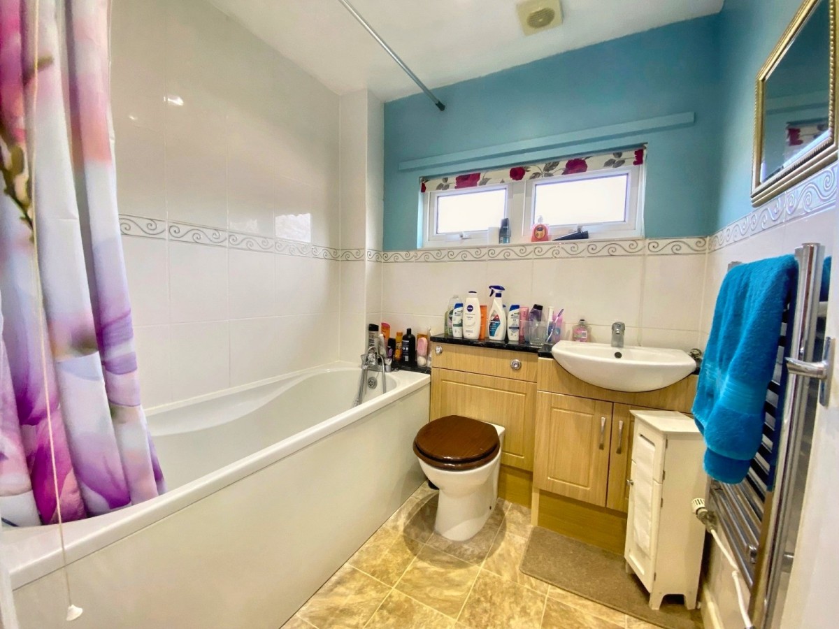 The accommodation features a sitting/dining room with patio doors to the rear garden, kitchen, cloakroom, three bedrooms and family bathroom.