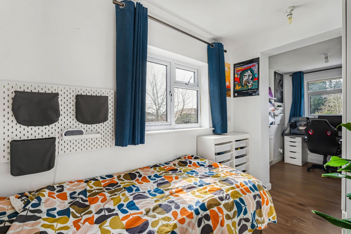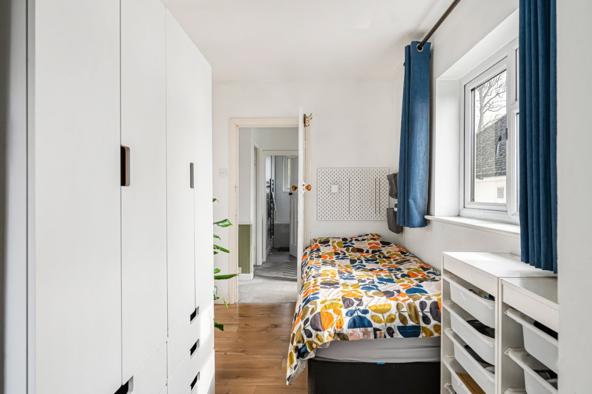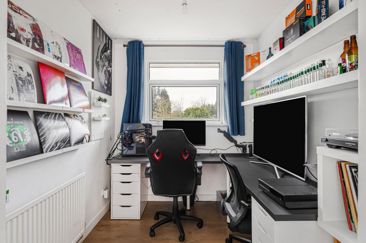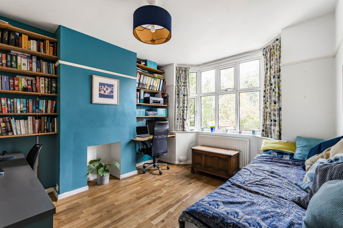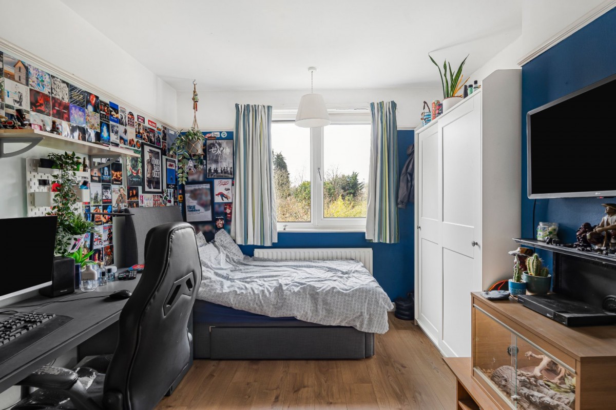 Upstairs, the property offers three well-proportioned bedrooms. Two generous double bedrooms benefit from built-in storage, while the third bedroom has been thoughtfully extended over the ground floor addition, creating a notably longer and more versatile space. This layout naturally lends itself to being used as both a bedroom and a home office or study area, making it ideal for flexible modern living. A family bathroom completes the first floor.