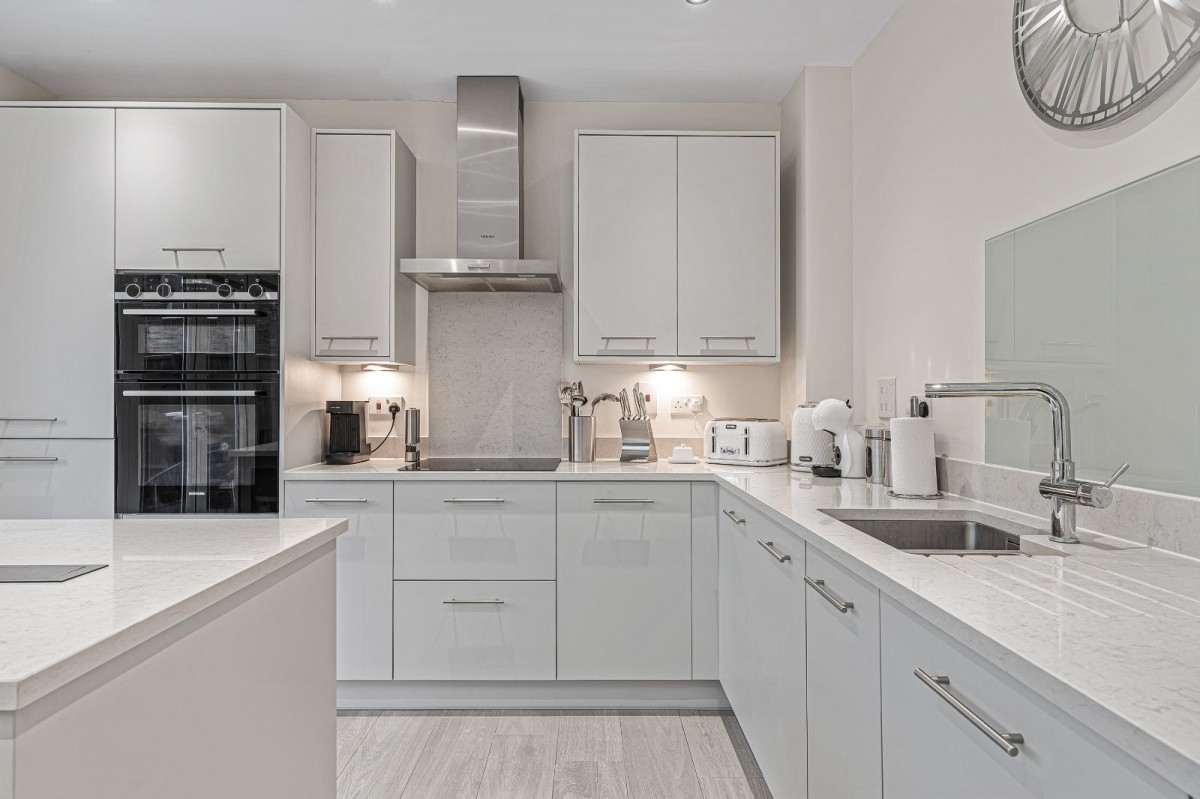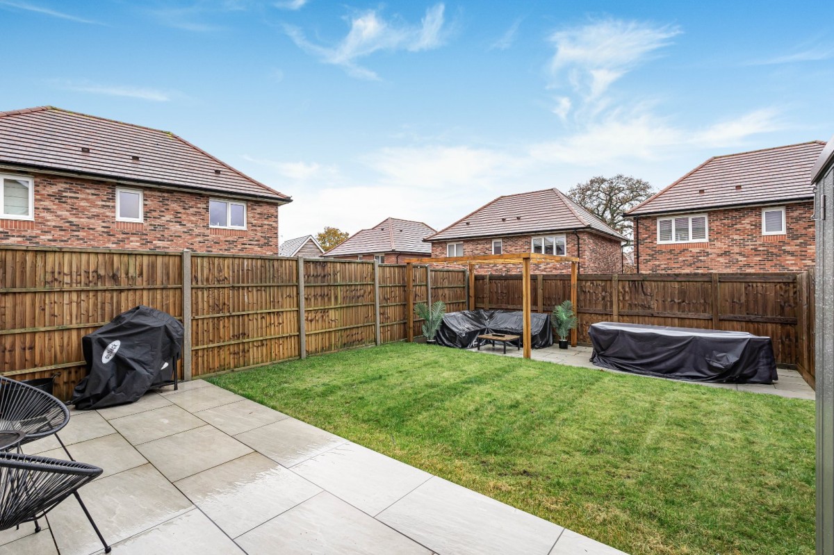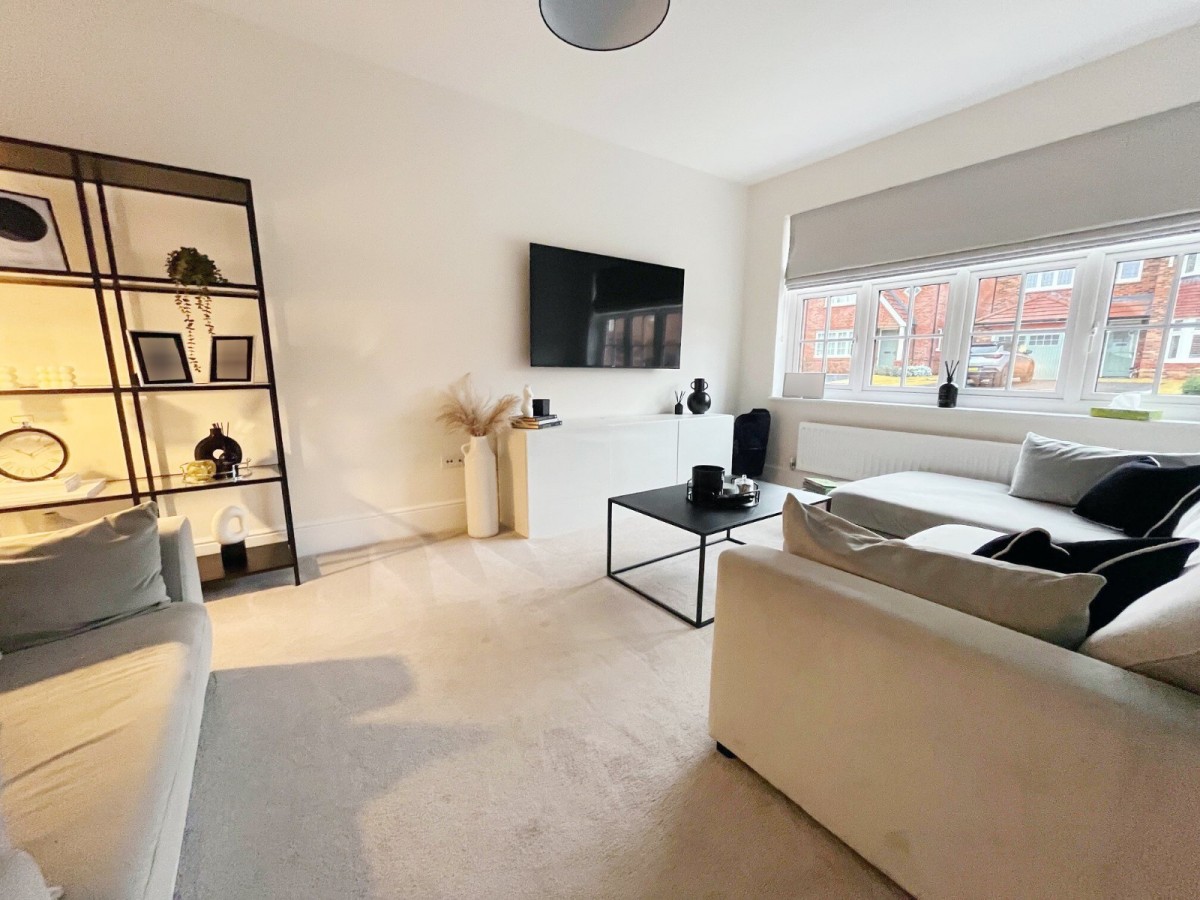 The property has been tastefully styled and thoughtfully upgraded, featuring a contemporary kitchen with island and breakfast bar, Silestone worktops, and premium integrated appliances. Further enhancements include Amtico flooring throughout, built-in wardrobes to the principal bedroom, and a landscaped garden complete with pergola and porcelain slab patio, creating a perfect space for relaxation and entertaining.