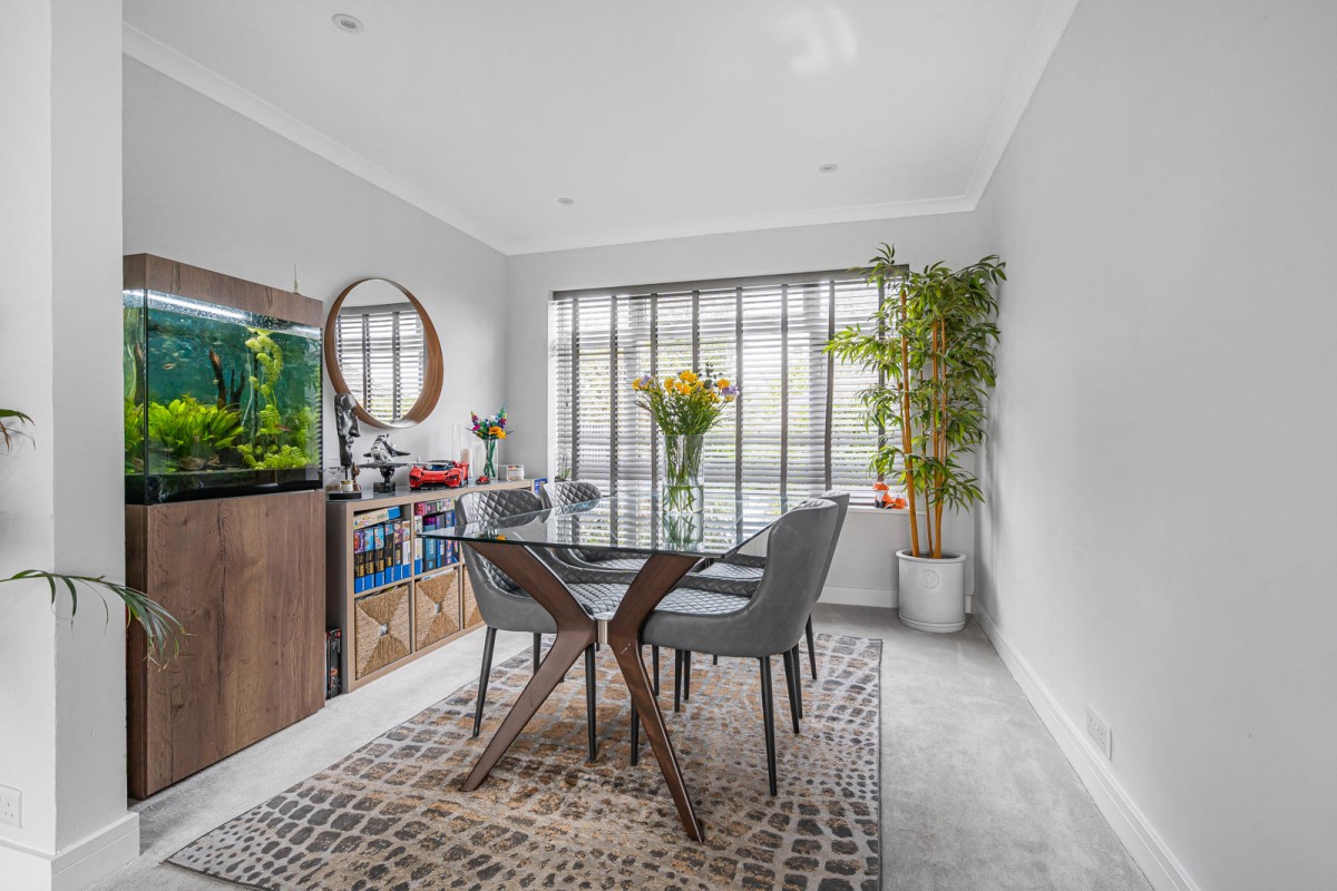 Entering Meadow Close, you are welcomed by a bright and open hallway, complete with understairs storage and providing access to the ground floor accommodation. Along the western side of the home are the double-aspect living and dining rooms. The living room features a fireplace with inset media appliances and a cased opening through to the dining area. Both rooms benefit from large windows, allowing natural light to fill the space.