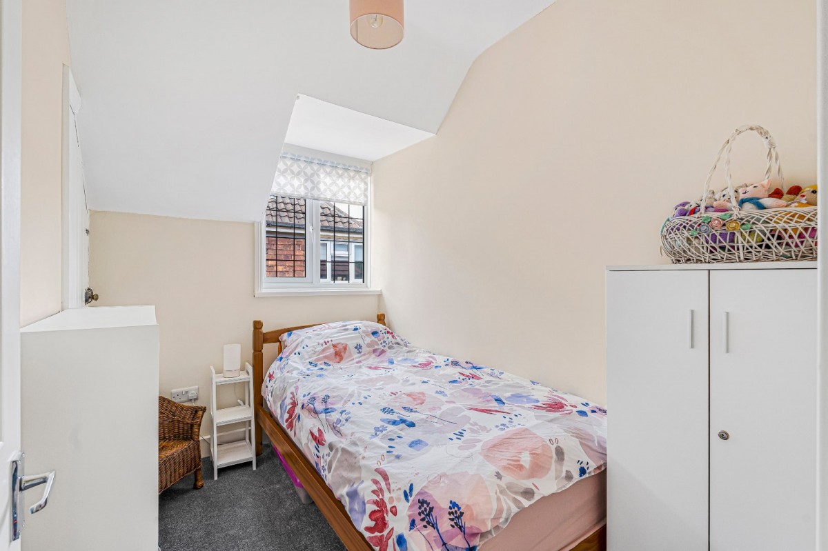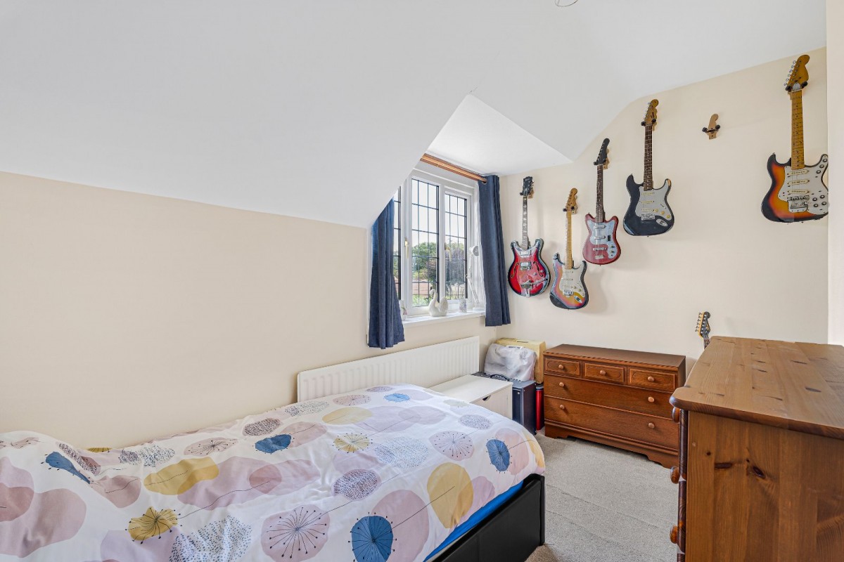 In recent years, the first-floor accommodation has been thoughtfully reconfigured to incorporate a modern, fully tiled shower room with walk-in shower, while still retaining three bedrooms. The principal bedroom is a generous double, enjoying lovely outlooks across the common, while the second and third bedrooms both benefit from built-in storage.