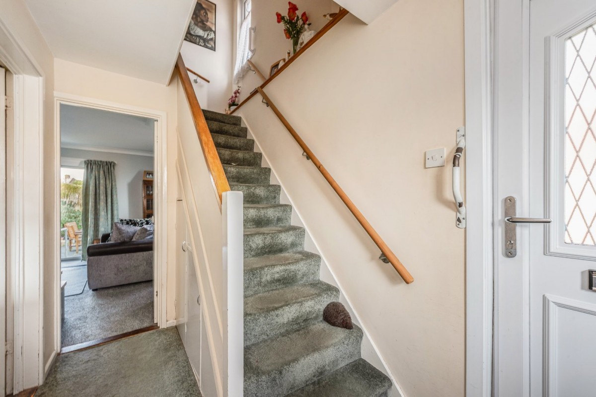 The front door opens into a spacious entrance hall, where the staircase rises to the first floor with a cupboard beneath. An attractive leaded light window provides an outlook over the front garden. From the hall a door leads into the lounge. This room features a brick built fireplace with an inset gas fire and sliding doors onto the rear garden. The kitchen/breakfast room is also accessed from the hall and is fitted with a range of units with laminated worksurfaces, ample space for appliances and room for a small table and chairs.