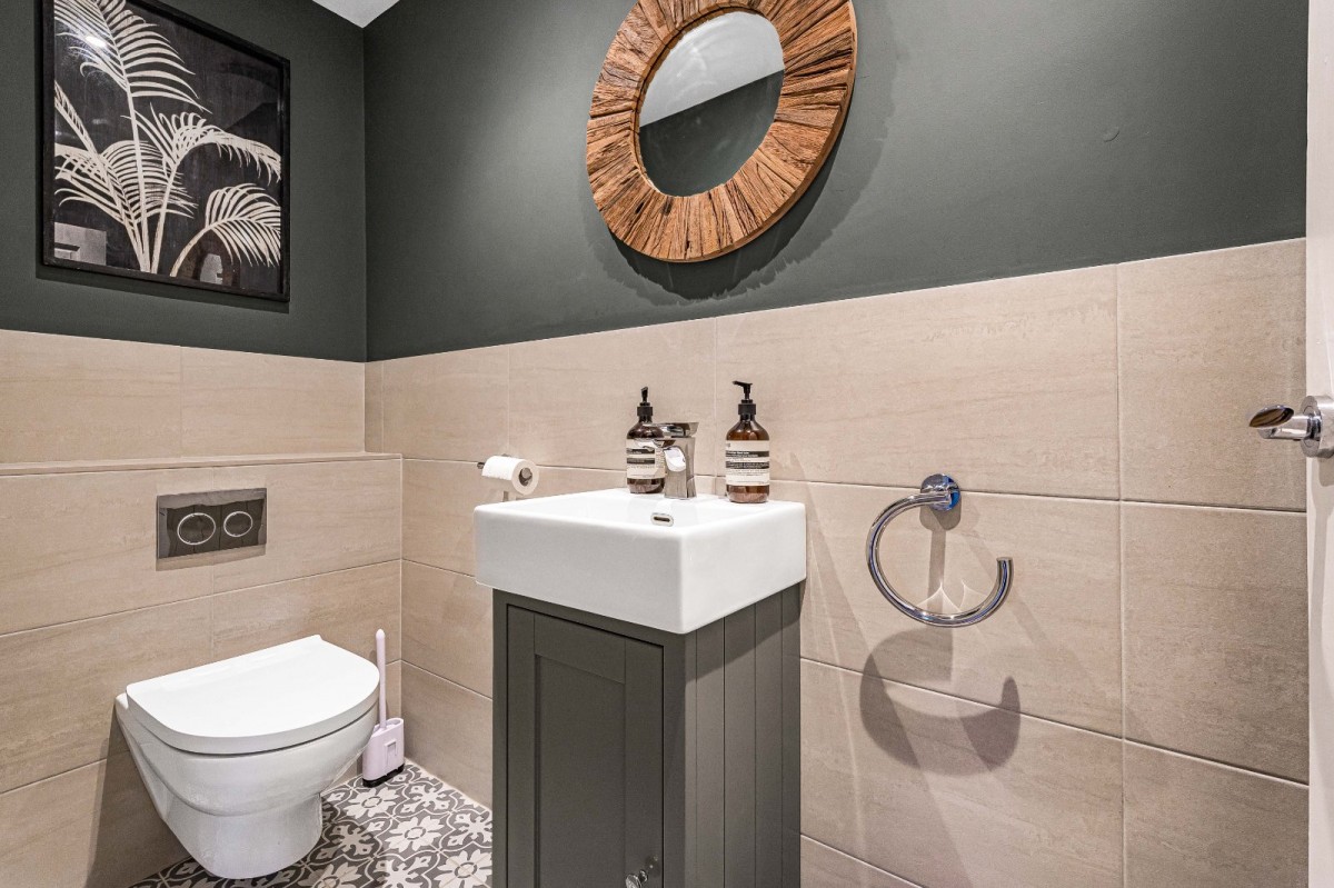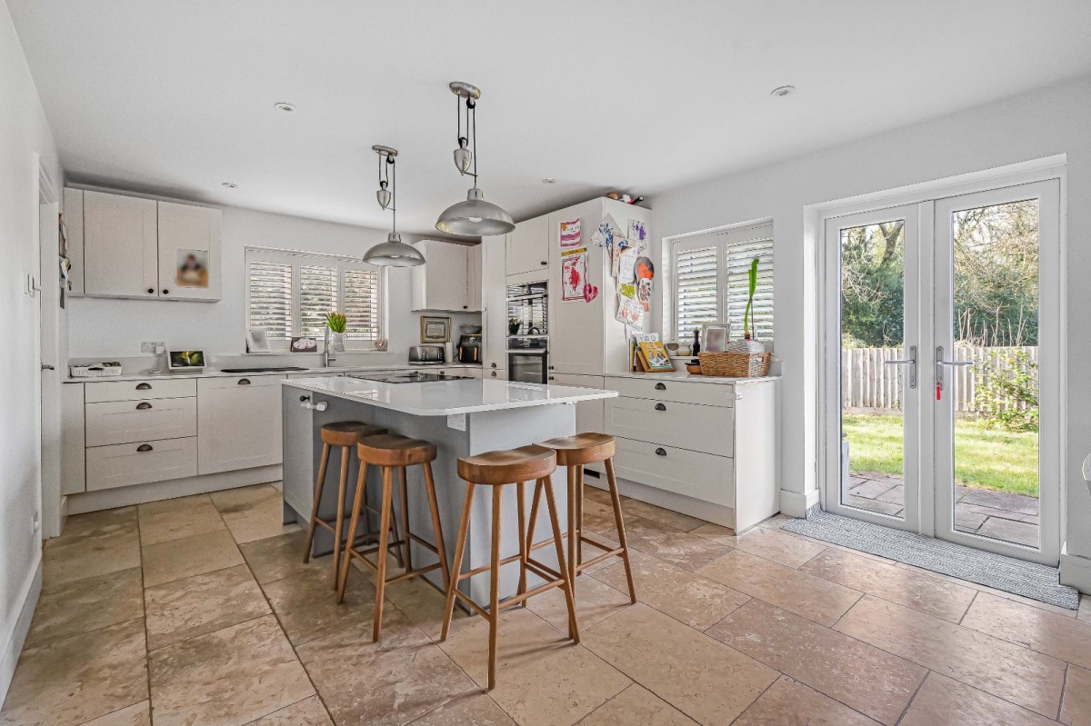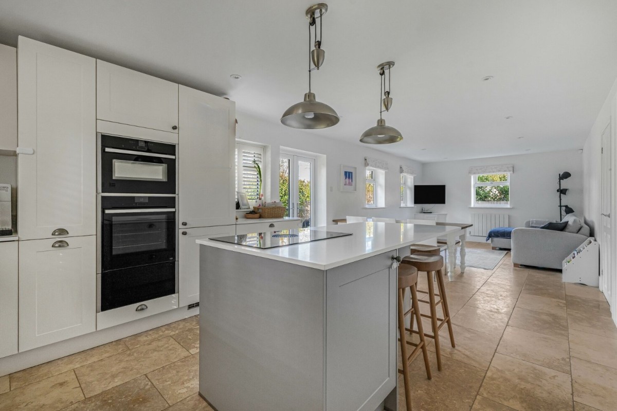 The heart of the home is the impressive open-plan, refitted kitchen and family dining space, extending from the front to the rear of the property. Beautiful quartz work surfaces complement the stylish cabinetry and integrated appliances, while a premium Quooker tap provides instant hot and sparkling water — a superb modern addition. Adjoining the kitchen is a practical utility/boot room, ideal for busy family life.