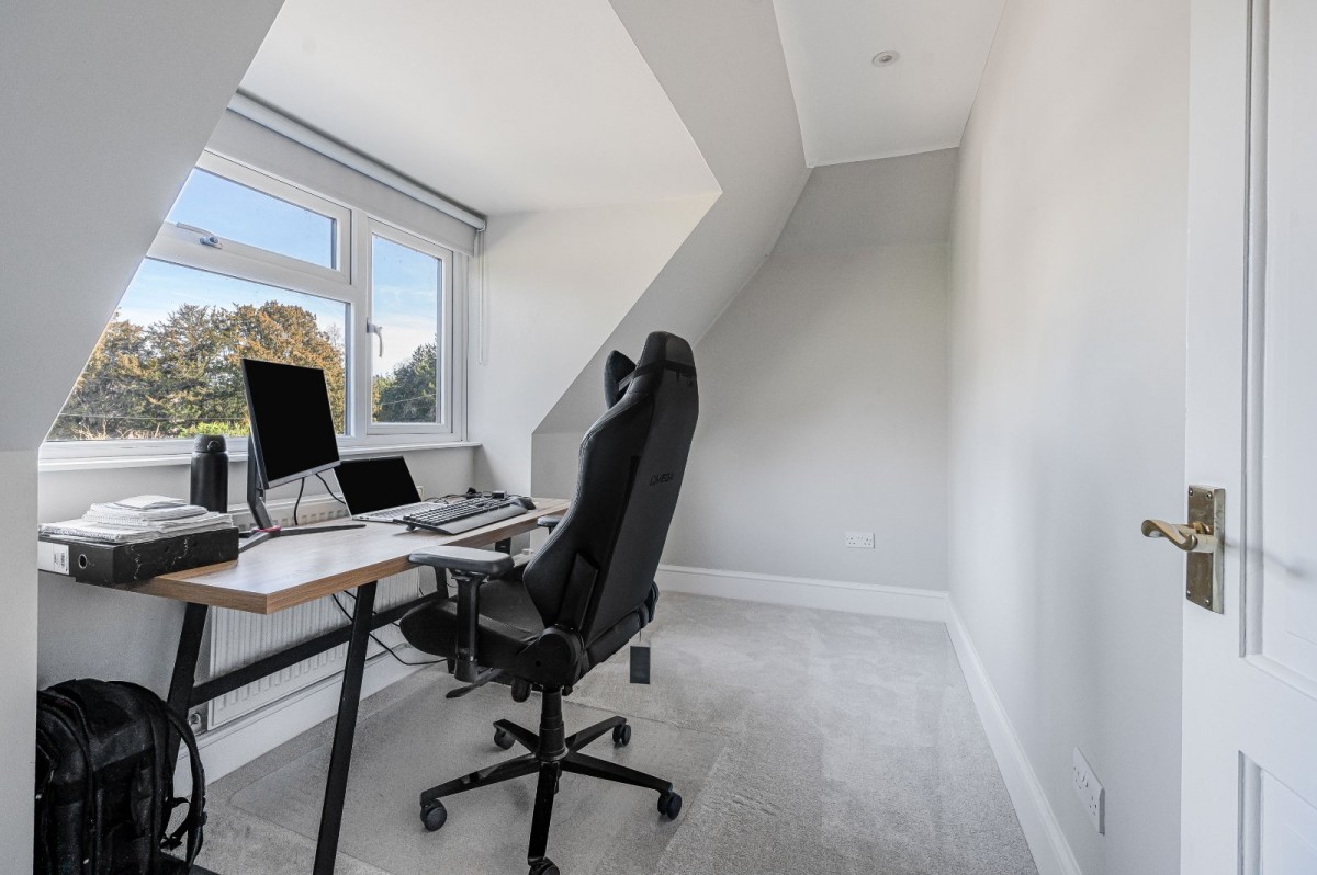 Upstairs, a central landing leads to four generous bedrooms. One benefits from en-suite facilities, while a luxurious refitted family bathroom features Porcelanosa tiles, creating a high-end, contemporary finish. The loft is partially boarded, offering excellent additional storage.