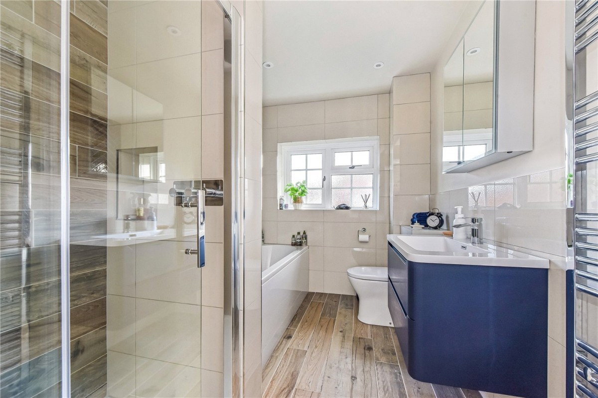 Upstairs, the landing is naturally bright and leads to the principal bedroom, which enjoys lovely views towards Butser Hill. This room offers an excellent range of built-in wardrobes and a smartly refitted ensuite shower room. Three further double bedrooms are accompanied by a further refitted family bathroom with a separate shower.