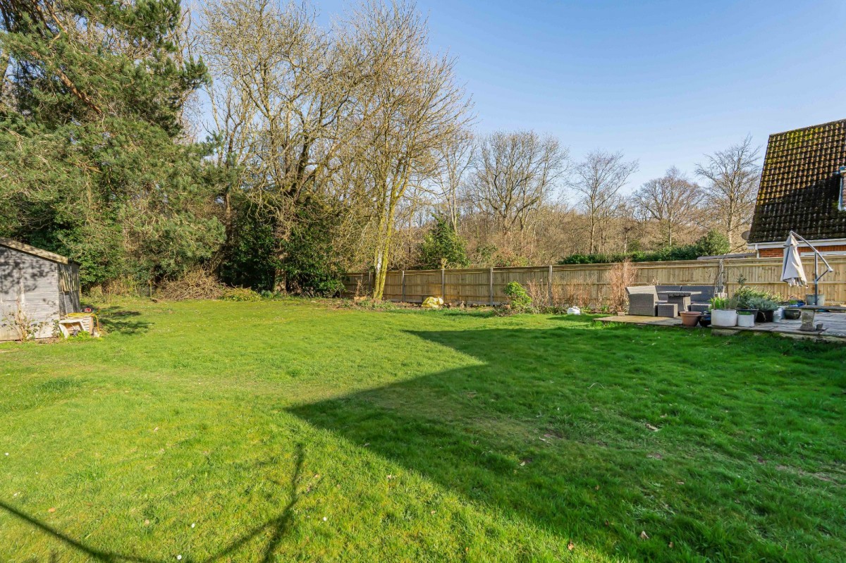 Externally, the property continues to impress. A long private driveway provides ample off-road parking for multiple vehicles, while the expansive garden enjoys a high degree of privacy, enclosed by wooden fencing and enhanced by mature trees and established shrubs. Predominantly laid to lawn, the grounds offer a peaceful outdoor setting with tremendous potential for landscaping, recreation, or future enlargement.