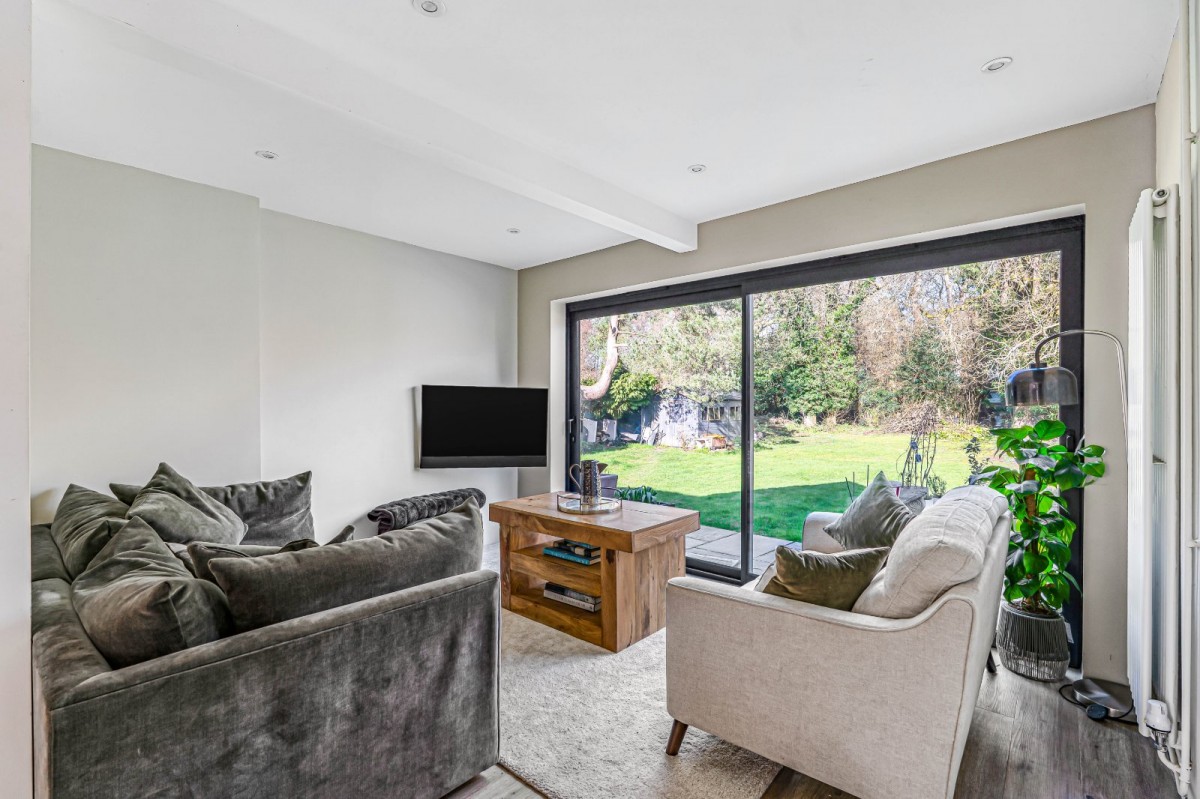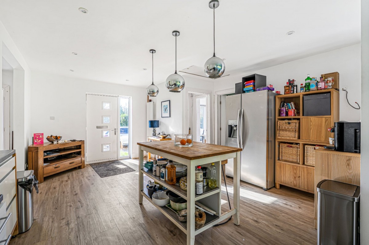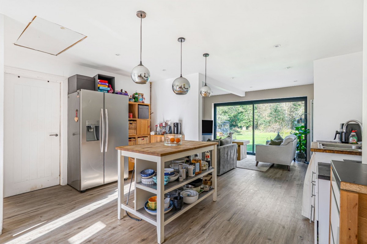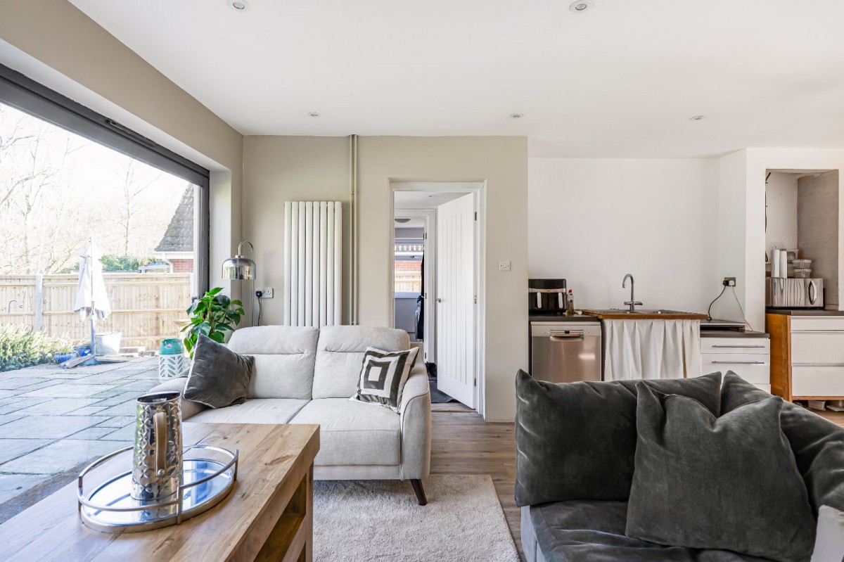 The accommodation is both spacious and well arranged, with a welcoming kitchen forming the central hub of the home and flowing seamlessly into the living room. Sliding doors open directly onto the garden, allowing natural light to flood the space while creating a wonderful connection between indoor and outdoor living. A separate utility room with pantry provides excellent practicality and additional storage.