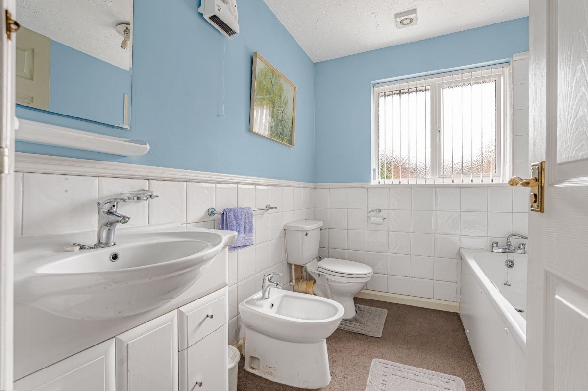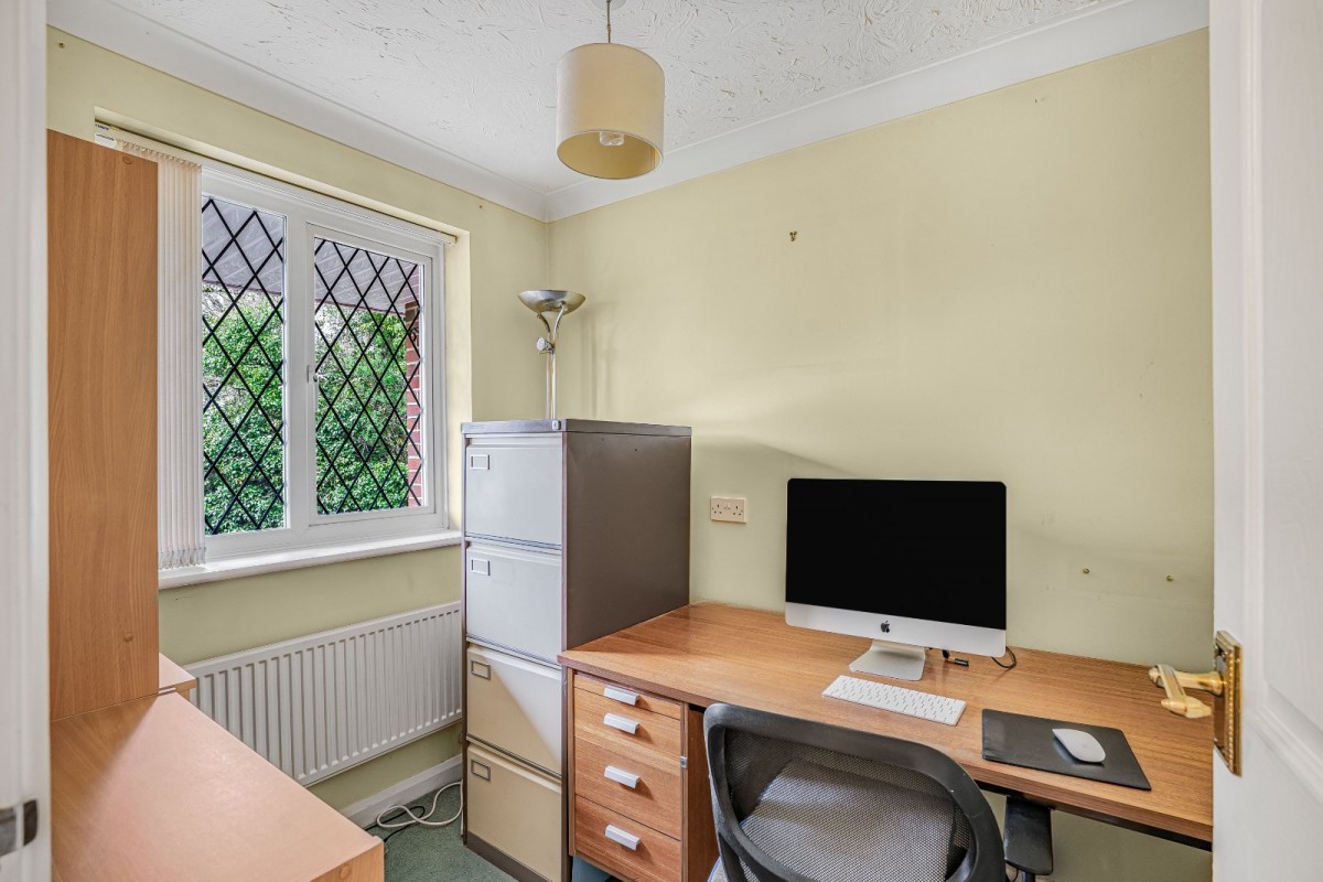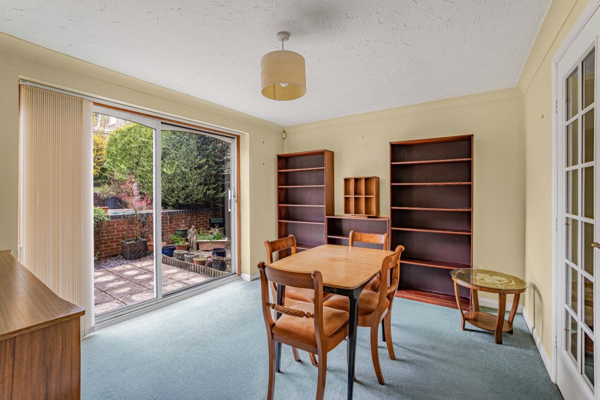 The property is entered via a welcoming entrance hall, complete with understairs storage and access to the principal ground floor rooms. The generous living room features a bay window and an attractive fireplace, creating a bright yet cosy reception space. In addition, there is a separate study, perfect for those working from home or seeking a quiet retreat. To the rear of the property, the kitchen is complemented by a separate utility room, while a separate dining room with sliding doors opens onto the rear garden, providing an excellent setting for both everyday living and entertaining.