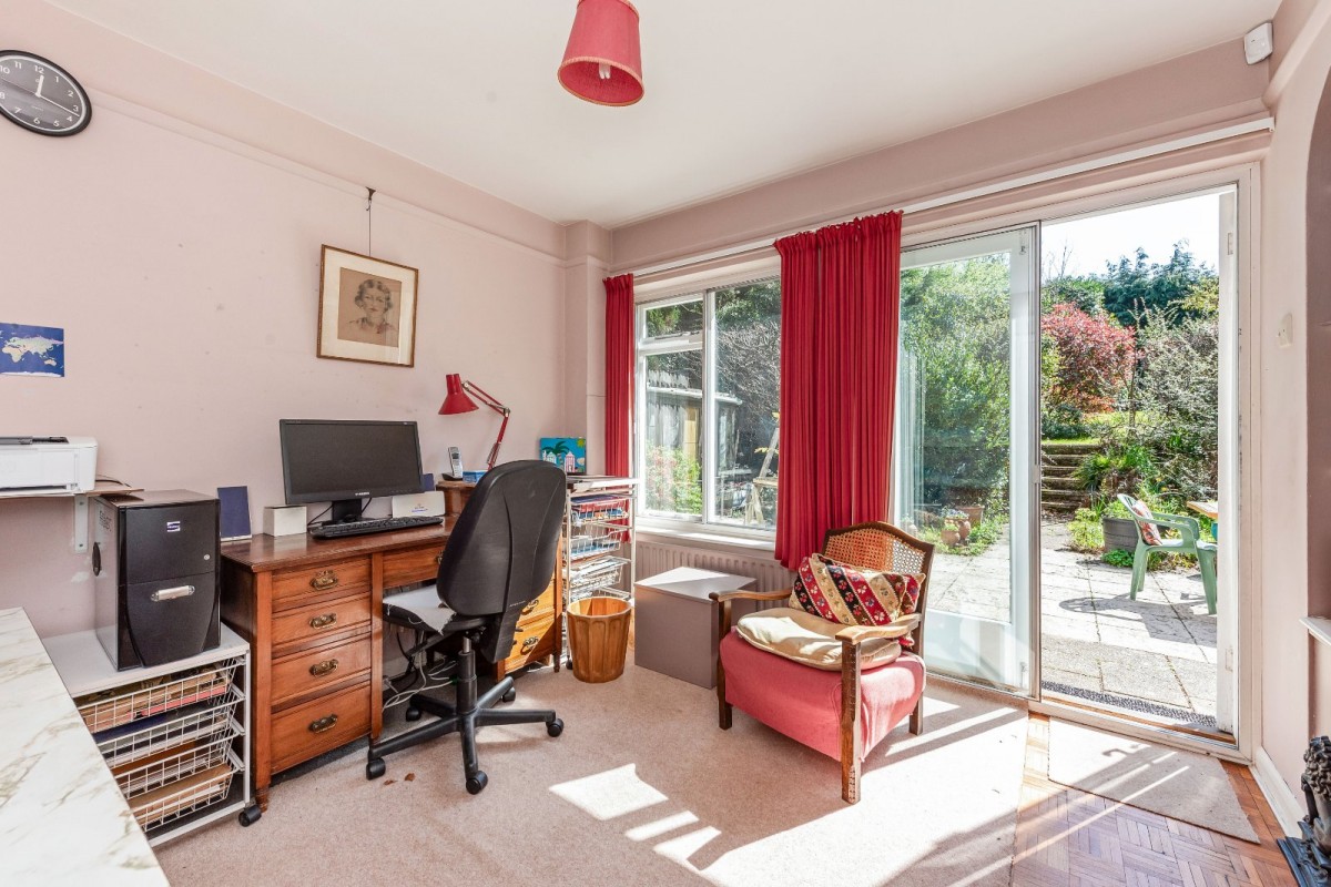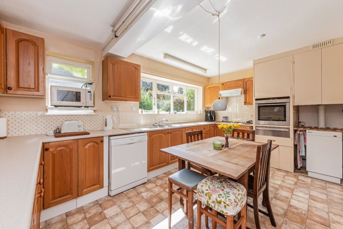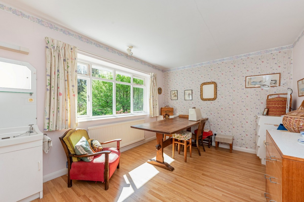The spacious living room is a standout feature, enhanced by an open-plan side extension that creates a wonderful sense of space and flow. A log burner provides a focal point, while large windows and the adjoining garden room enjoy delightful views over the garden, with direct access outside. In addition, there is a separate dining room and a further versatile reception room, ideal as a study or home office, which also benefits from external access.