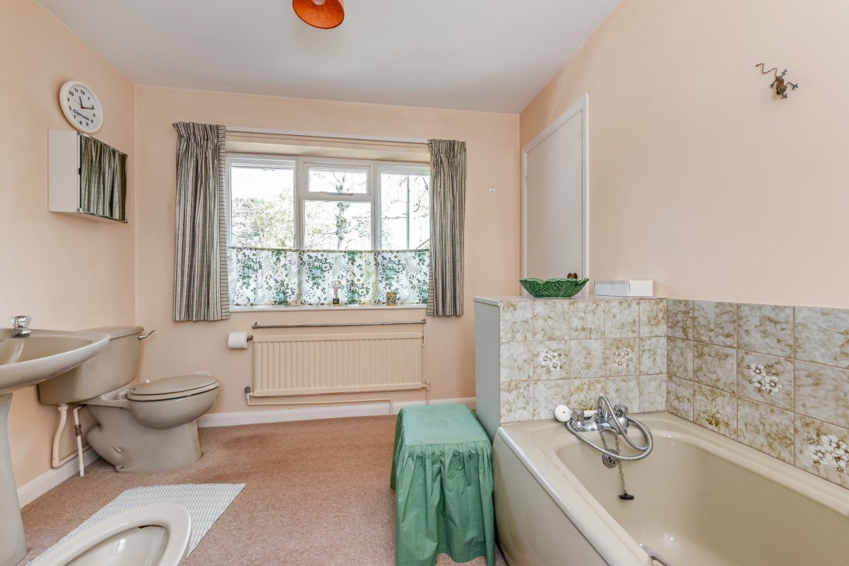 The kitchen/breakfast room is fitted with a range of base and eye-level units, offers space for a dining table, and presents an excellent opportunity for modernisation. A practical utility room adjoins the kitchen and provides further access to the garden, completing the ground floor.