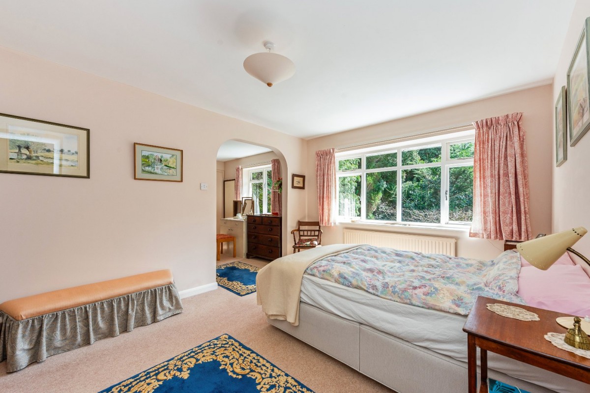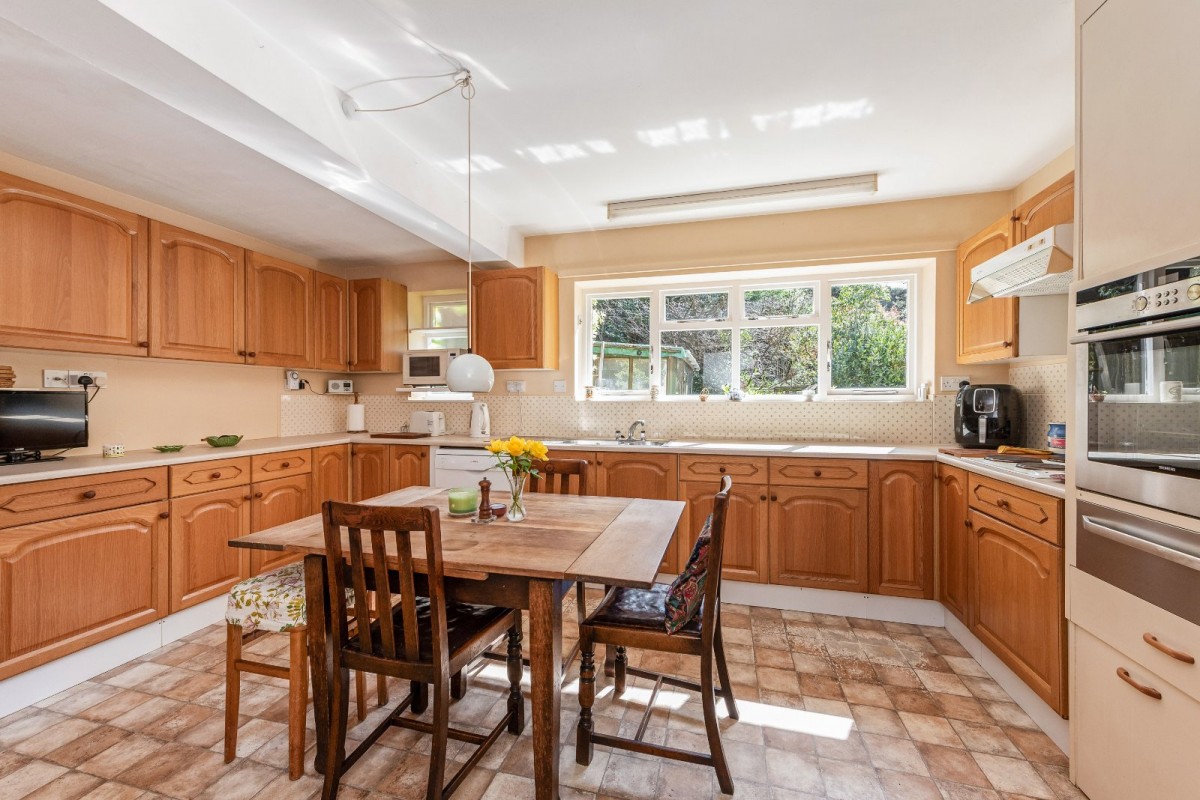 Approached via a private driveway providing ample off-road parking and access to a detached double garage, the home immediately impresses with its setting and potential. The location is particularly convenient, offering easy access to Liss village with its mainline railway station, primary school, and everyday amenities, while the nearby market town of Petersfield provides a wider range of facilities, including a further station with fast services to London Waterloo.