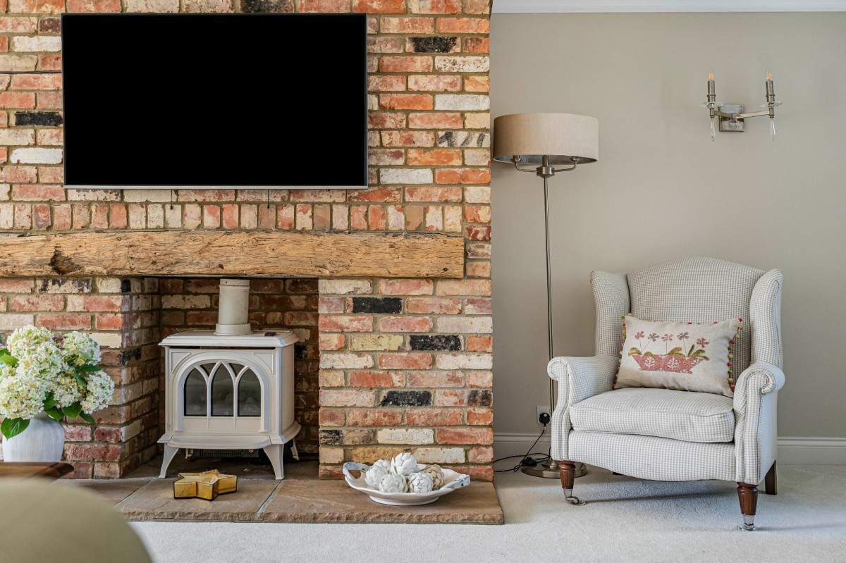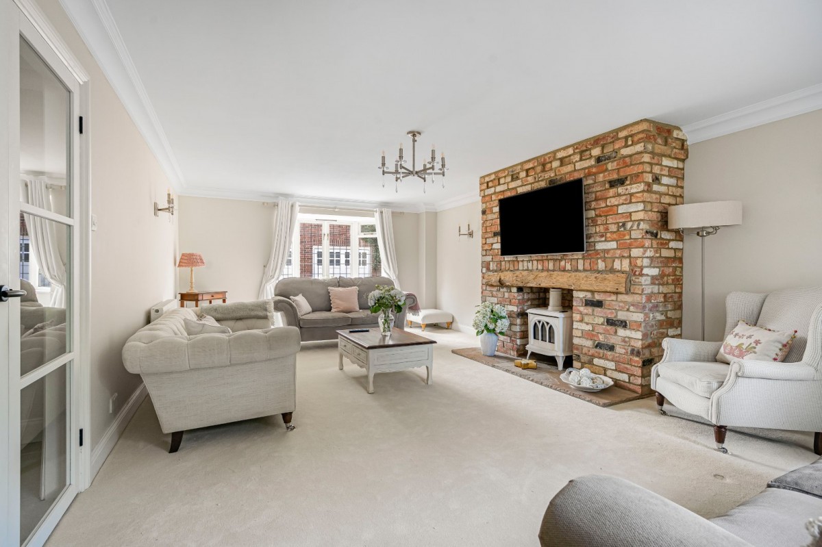 A welcoming entrance hall sets the tone for the rest of the property, leading to a spacious 24’2 dual-aspect sitting room with a feature brick fireplace and wood-burning stove – perfect for cosy evenings. The heart of the home is the beautifully designed kitchen/breakfast room, complete with a central island, shaker cabinetry, and double doors opening out to the rear garden. Adjoining the kitchen is a family room, offering further flexible living space. Also on the ground floor is a formal dining room, practical utility room with space for additional appliances, a dedicated study, and cloakroom — ideal for modern family life.