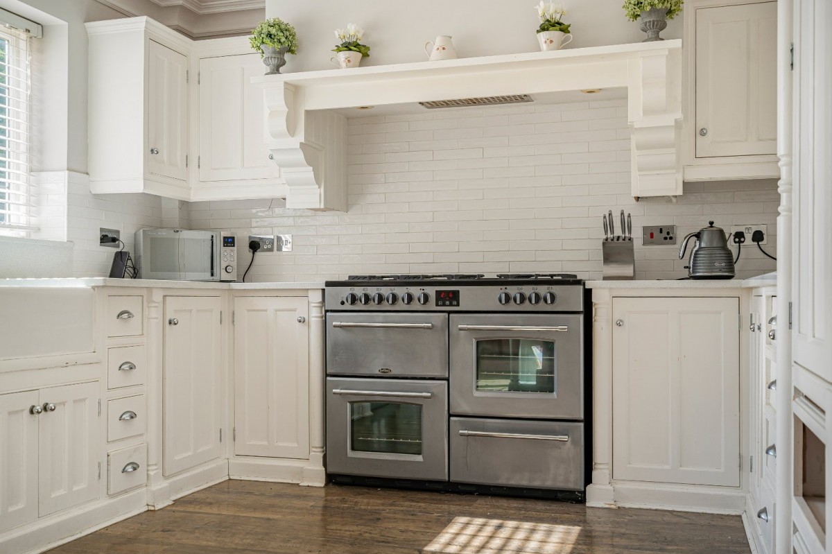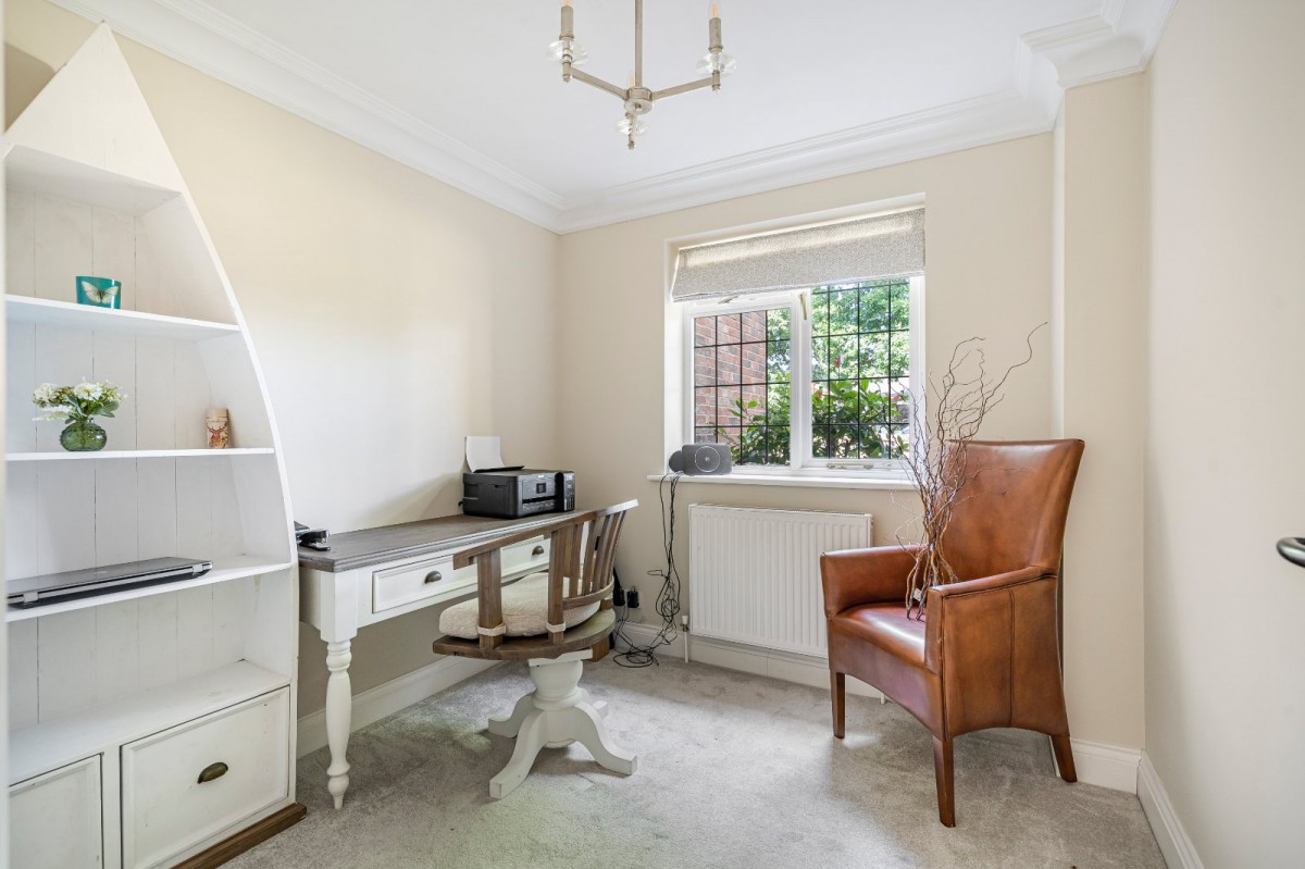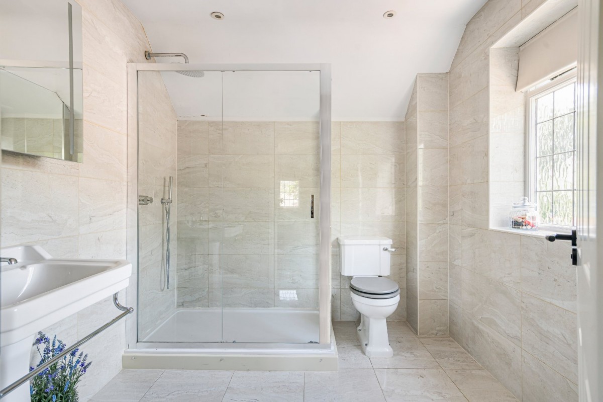 Upstairs, a spacious galleried landing leads to four double bedrooms, each generously proportioned. The principal and second bedrooms both benefit from stylish en-suite shower rooms, while a well-appointed family bathroom serves the remaining rooms.
