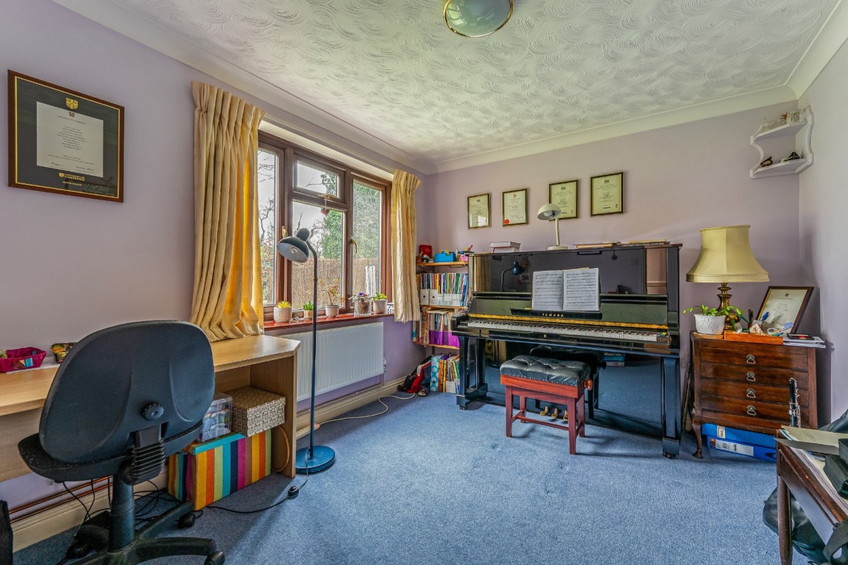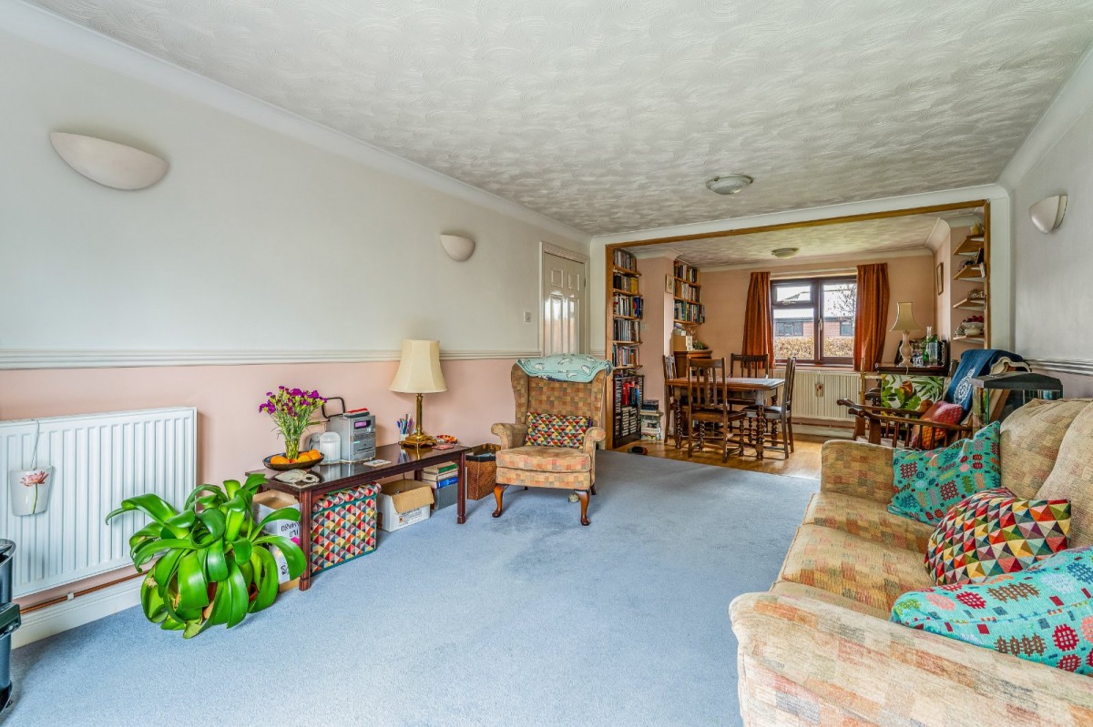 The accommodation is thoughtfully arranged over two floors and designed to suit modern family living. On entering the property, a welcoming and spacious entrance hallway sets the tone, complete with a ground floor cloakroom and a turning staircase leading to the first floor. The living room is particularly generous, enjoying a front to rear aspect and featuring sliding patio doors that open directly onto the garden, creating a bright and inviting space. A second reception room provides flexibility and would work equally well as a dining room or family room. The kitchen has been updated and is of a size to comfortably accommodate a breakfast table, while an adjoining utility room offers additional storage and direct access to the outside.