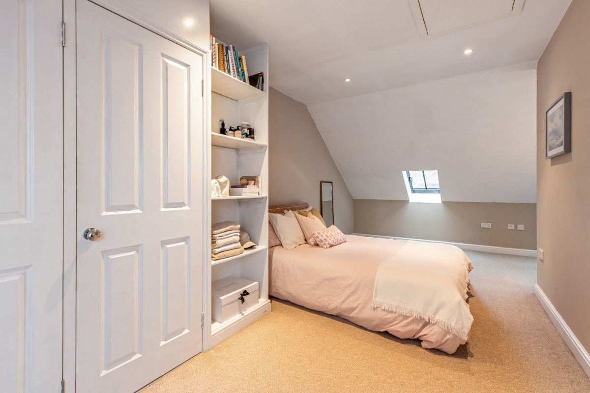 The four bedrooms are arranged across the first and second floors and are centred around an impressive landing with a turning staircase. All bedrooms are well-proportioned, comprising three comfortable double rooms and an oversized single bedroom with built-in wardrobe storage. The principal bedroom benefits from fitted storage and its own en-suite shower room, while a well-appointed family bathroom serves the remaining bedrooms.