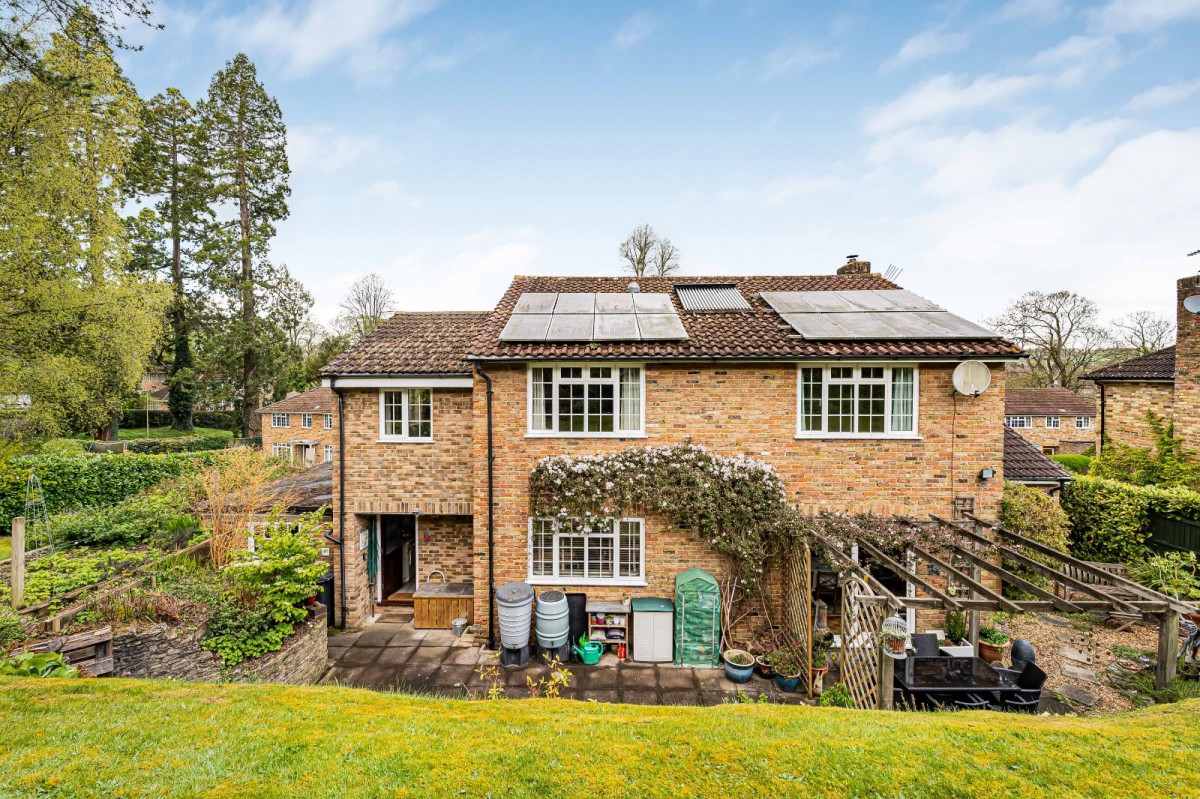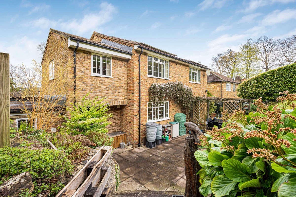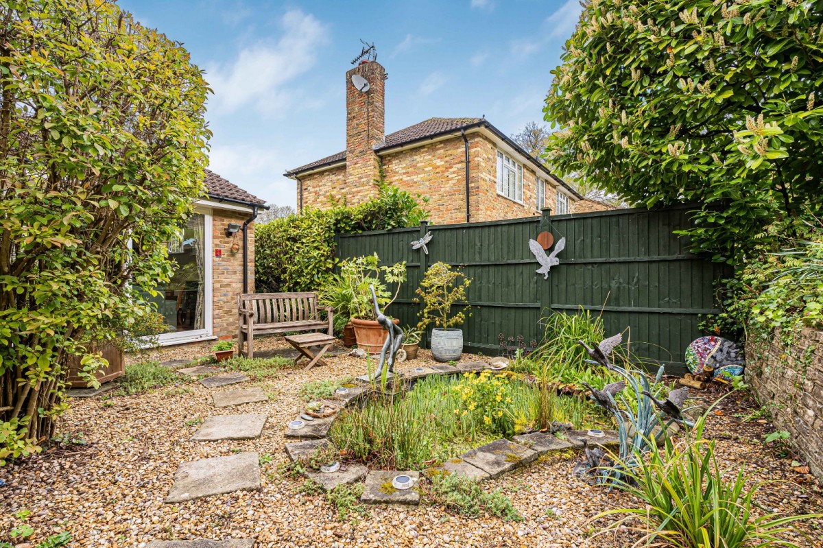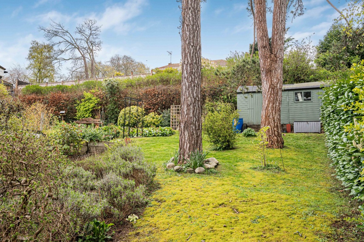The property is complemented by an exceptional wrap-around garden, offering a high degree of privacy and a wonderful sense of space. A patio extends across the rear of the house, ideal for outdoor dining and entertaining, while an additional paved seating area to the side provides further space to relax and enjoy the surroundings. The garden is predominantly laid to lawn and enhanced by a pond, pergola-covered seating area, and a garden shed.