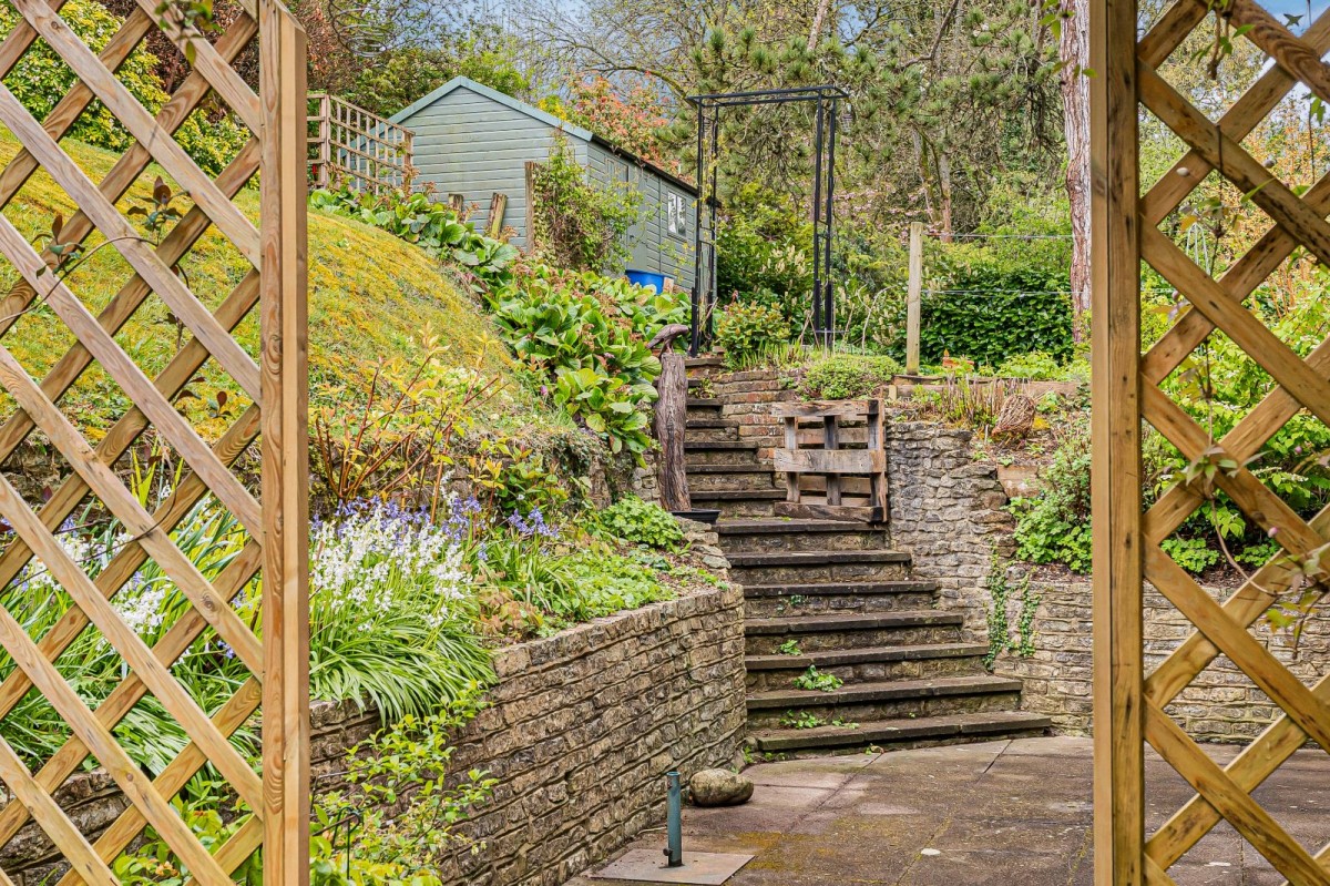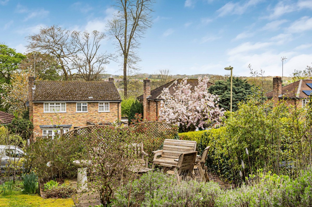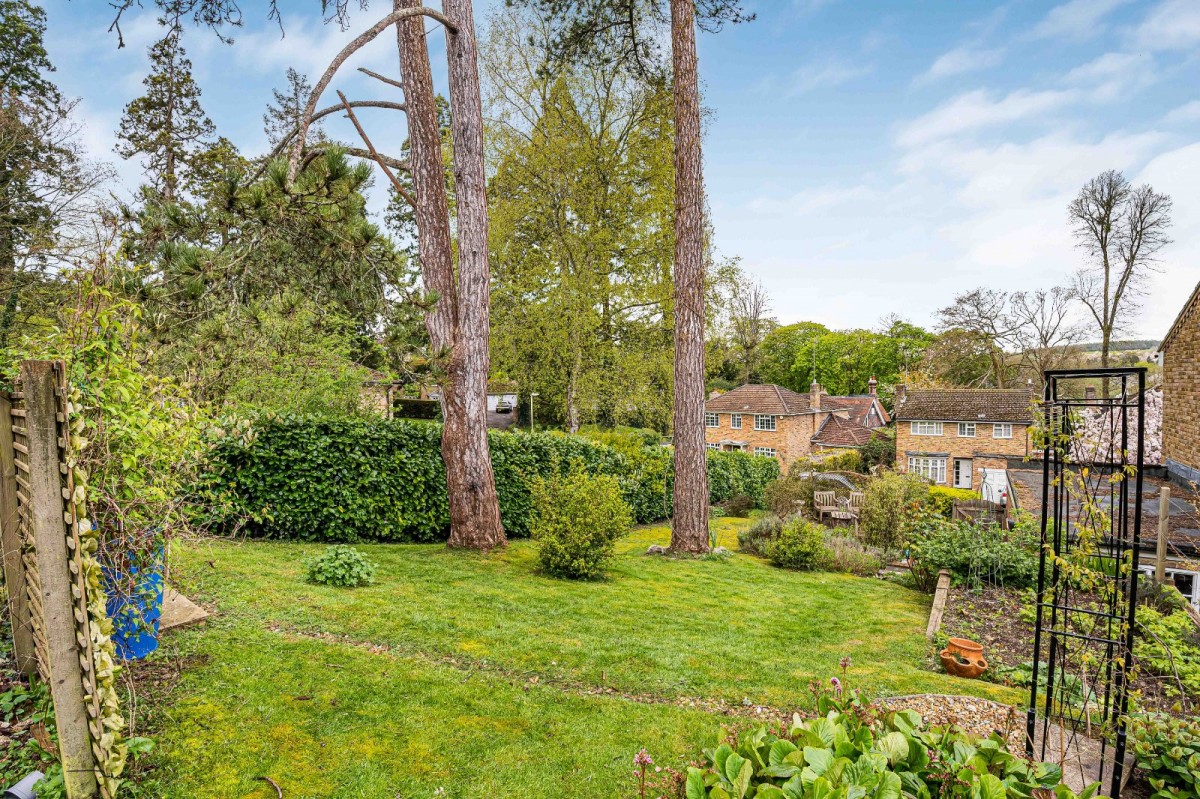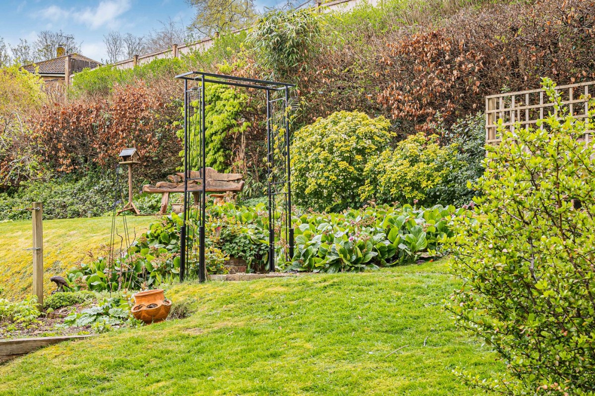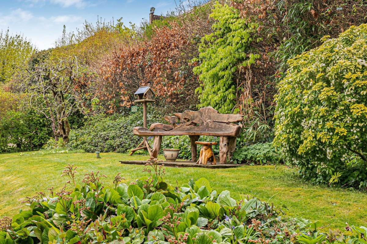 The property is complemented by an exceptional wrap-around garden, offering a high degree of privacy and a wonderful sense of space. A patio extends across the rear of the house, ideal for outdoor dining and entertaining, while an additional paved seating area to the side provides further space to relax and enjoy the surroundings. The garden is predominantly laid to lawn and enhanced by a pond, pergola-covered seating area, and a garden shed.