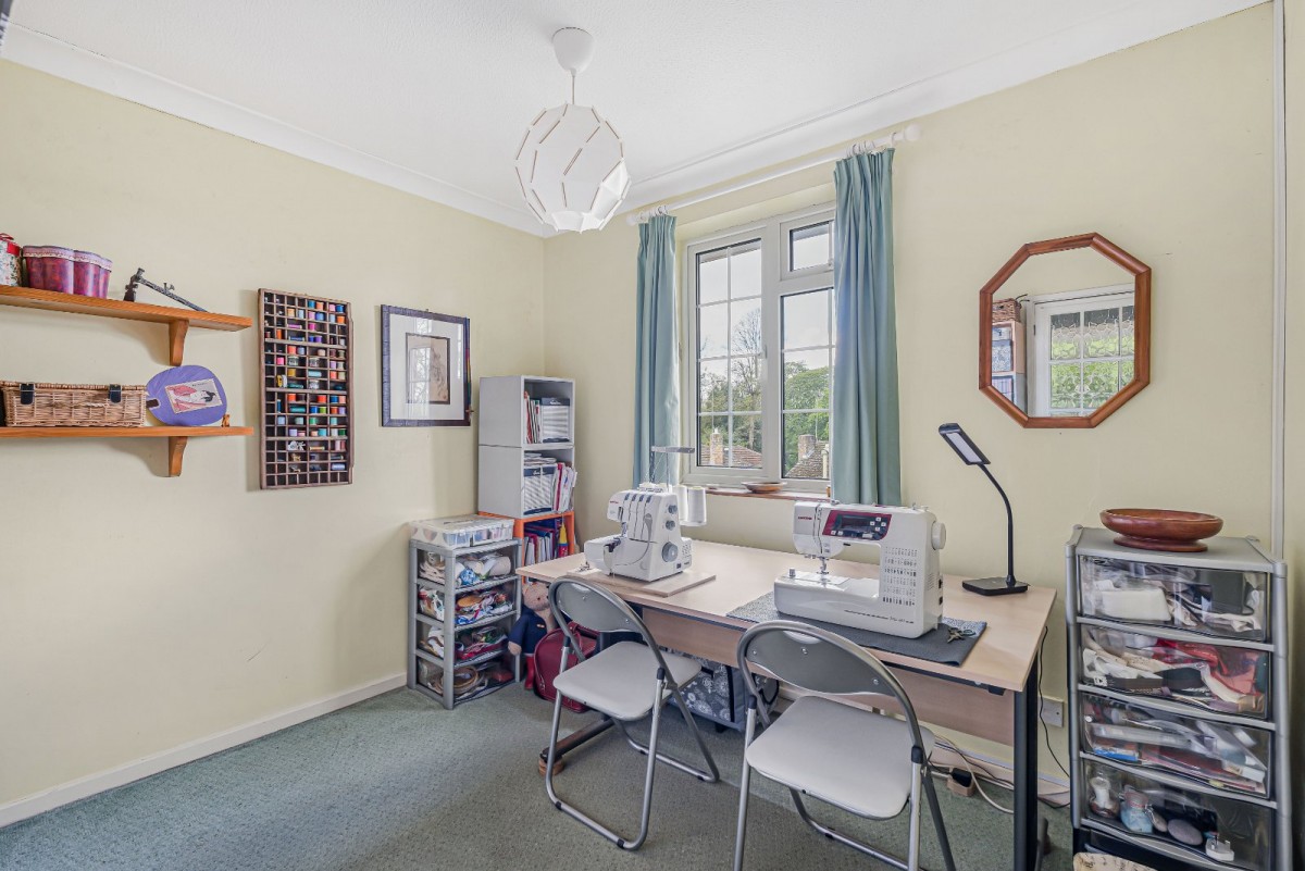 Upstairs, five well-proportioned bedrooms are arranged from the central landing. The principal bedroom benefits from an ensuite shower room, while bedroom two offers built-in storage. Bedrooms three and four are both generous doubles, with one currently used as a sewing room, and along with bedroom five, provide excellent flexibility to suit a variety of needs, whether as additional bedrooms, home offices, or hobby and creative spaces. A family bathroom serves the remaining rooms.