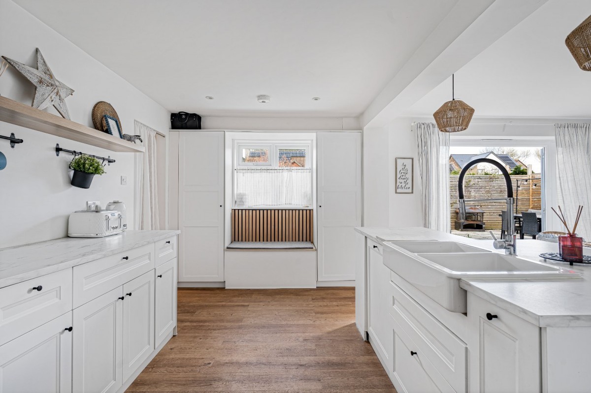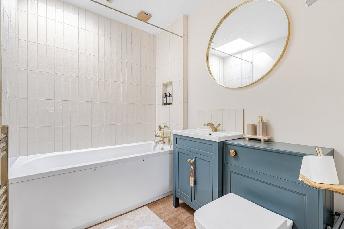 Upstairs, the main house continues to impress, offering four well-proportioned bedrooms. The principal bedroom benefits from a modern en-suite shower room, whilst three further double bedrooms are served by a beautifully refitted family bathroom suite. The overall finish is clean, neutral and luxurious, allowing any purchaser to move straight in without the need for further work, while still appealing to a wide range of tastes.