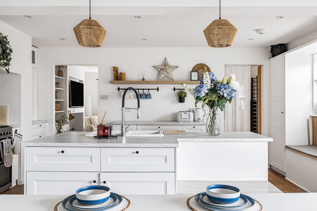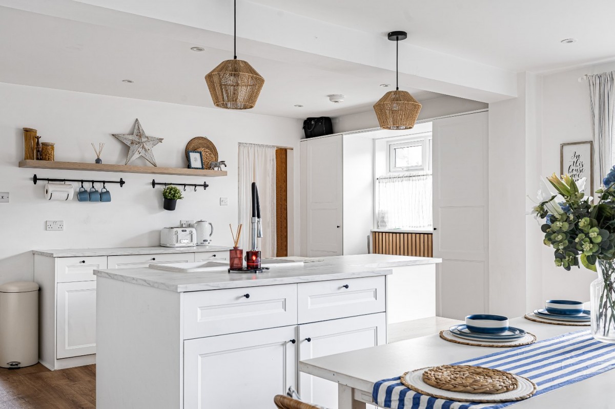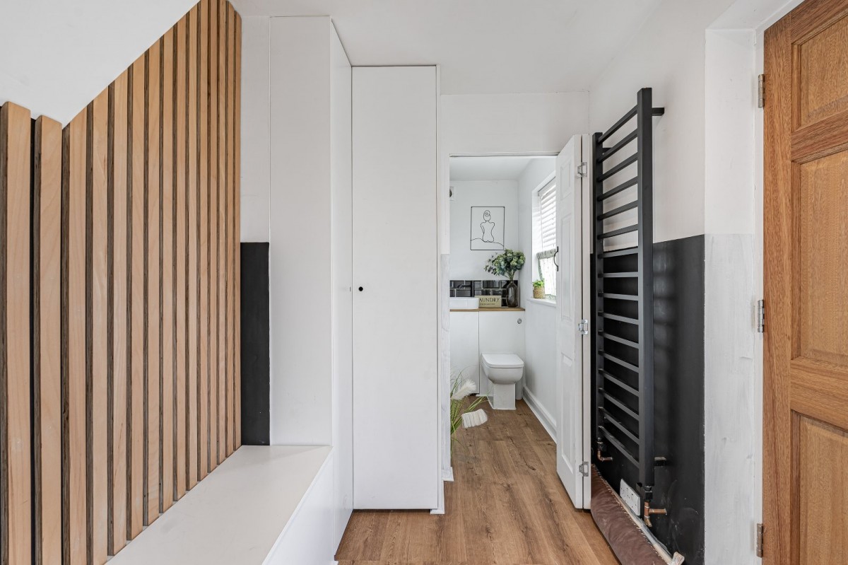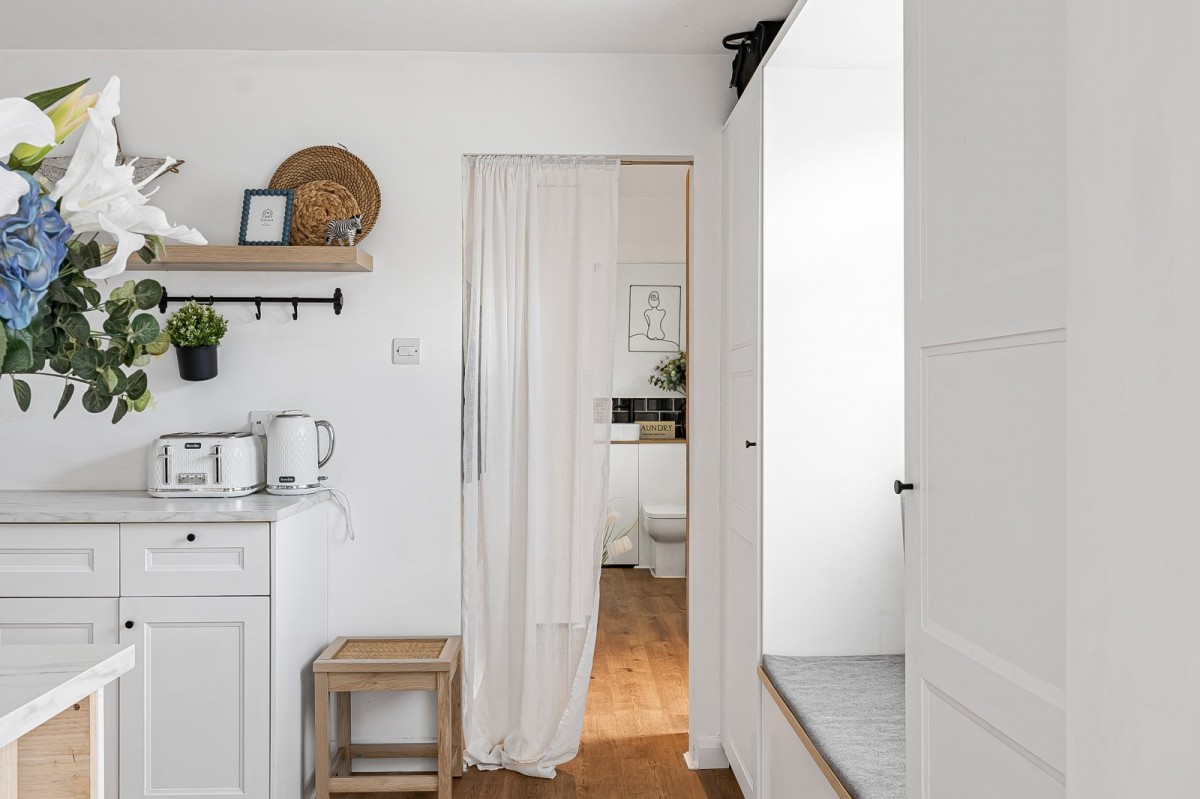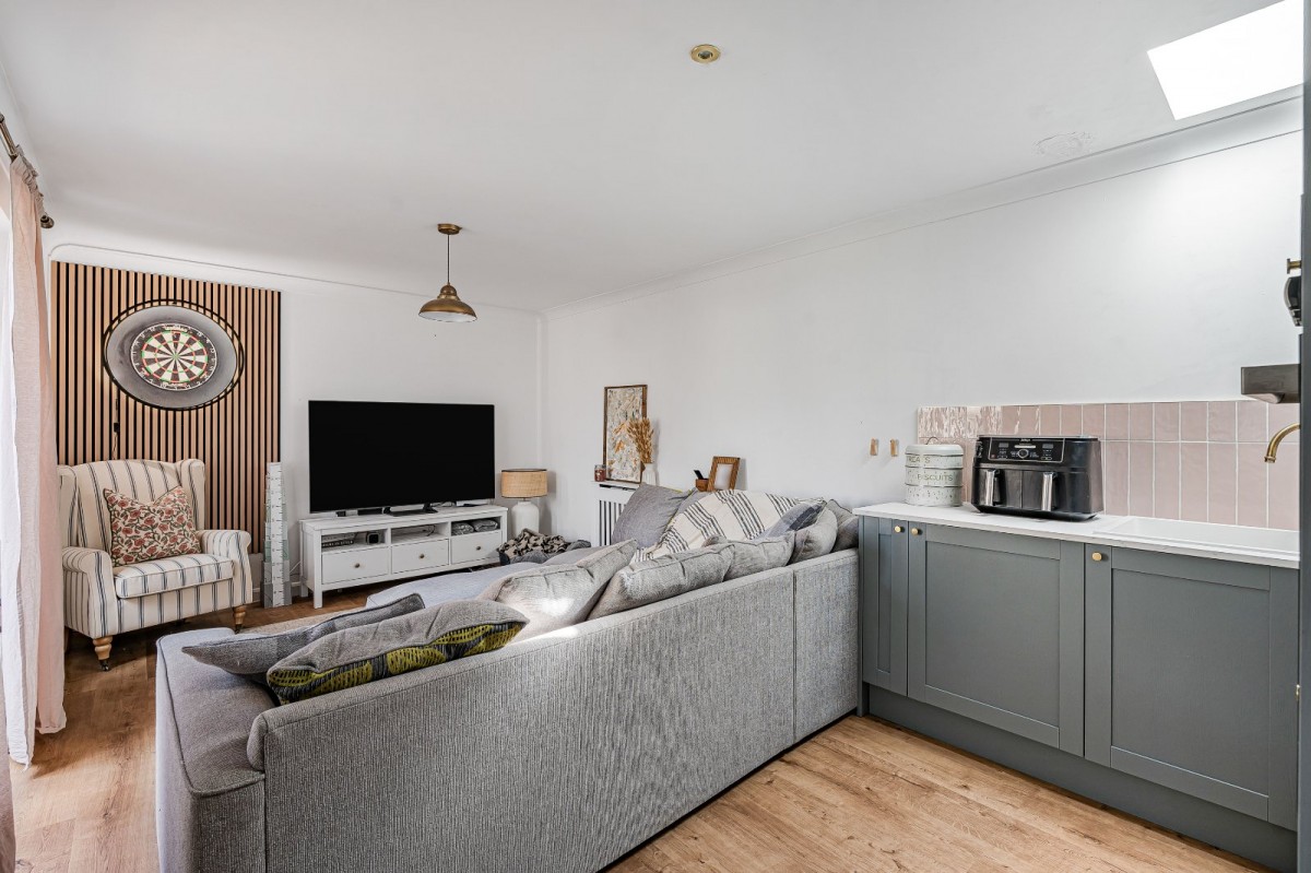 The ground floor also provides access to the annexe, which has been cleverly integrated yet remains entirely self-contained. The annexe features an open-plan living and kitchen area, a stylishly refitted bathroom suite, and a generous double bedroom with built-in wardrobes, making it ideal for extended family, independent living, or potential income.