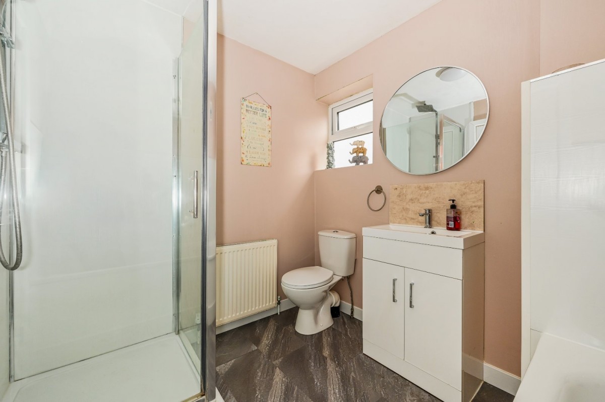 Upon entering, you are welcomed into a hall that provides access to most ground floor rooms and stairs leading to the principal suite. To the right, a study—easily adaptable as a sixth bedroom—sits adjacent to a family bathroom. Bedrooms four and five are positioned at the rear, each having built-in wardrobes with bedroom four benefitting from an en-suite shower room.