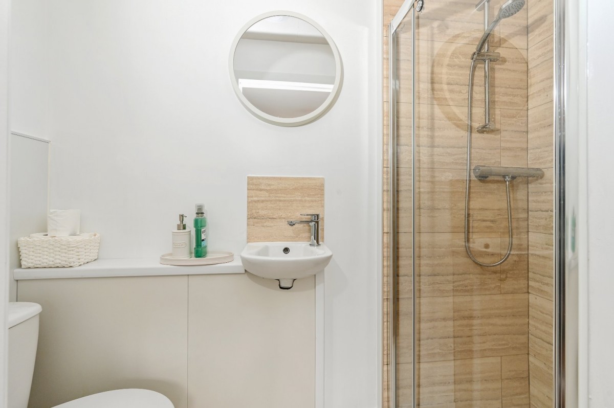 Upstairs, the master suite is a standout feature comprising a double-aspect bedroom with Juliet balcony, large walk-in dressing room with built-in wardrobes—ideal as a nursery if desired—and an en-suite bathroom.