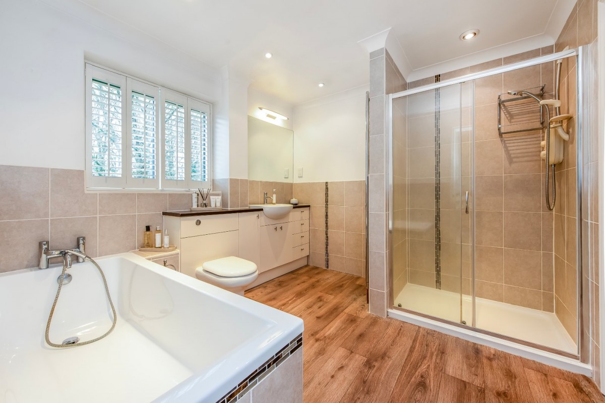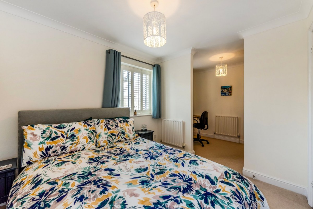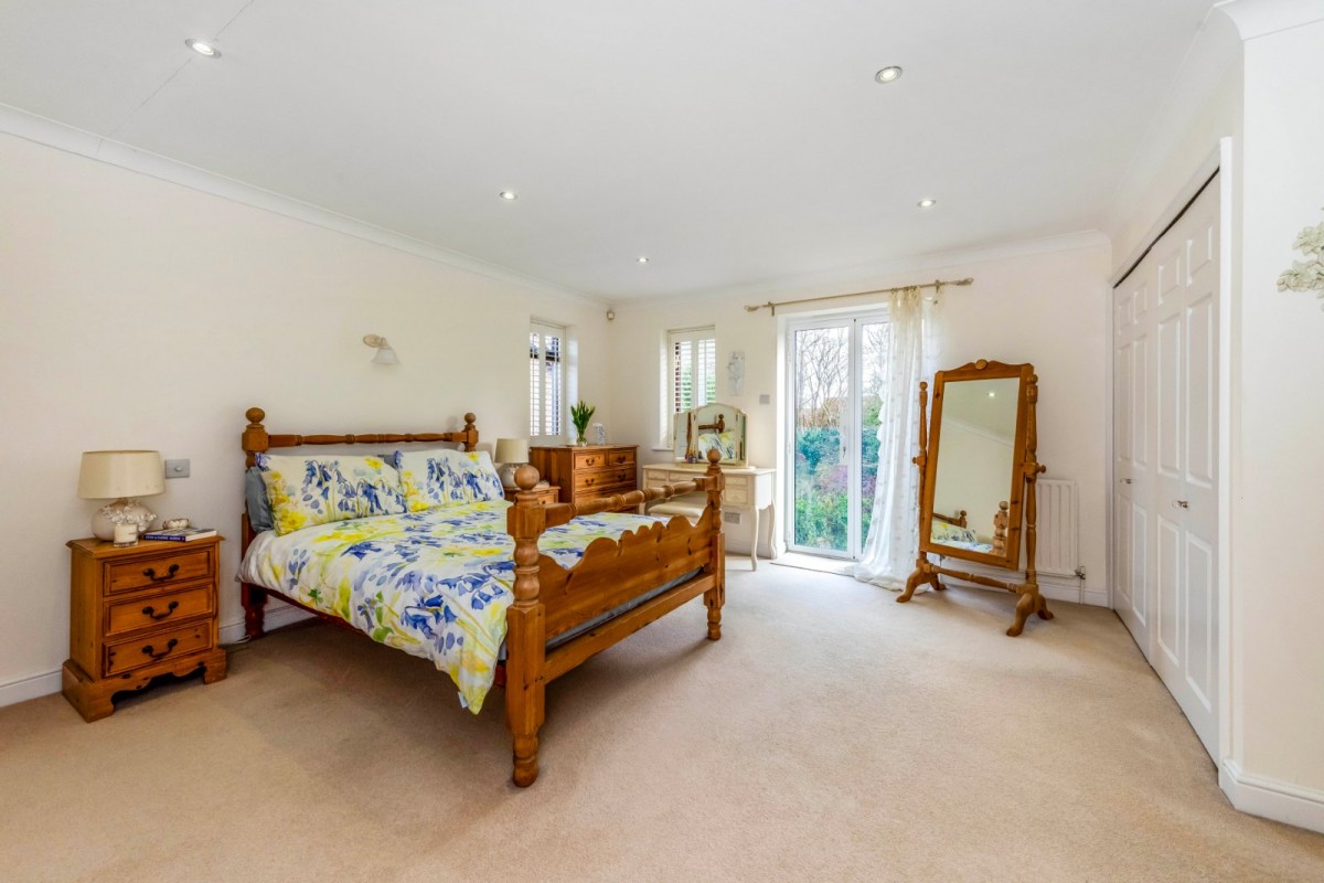 Upstairs, a galleried landing leads to all bedrooms and the family bathroom. The principal bedroom includes a Juliet balcony overlooking the rear garden, fitted wardrobes and an en-suite bathroom. Bedrooms two, four and five also have built-in wardrobes, with bedroom three benefiting from an en-suite shower room. Bedroom five has an adjoining anteroom ideal as a study or nursery.