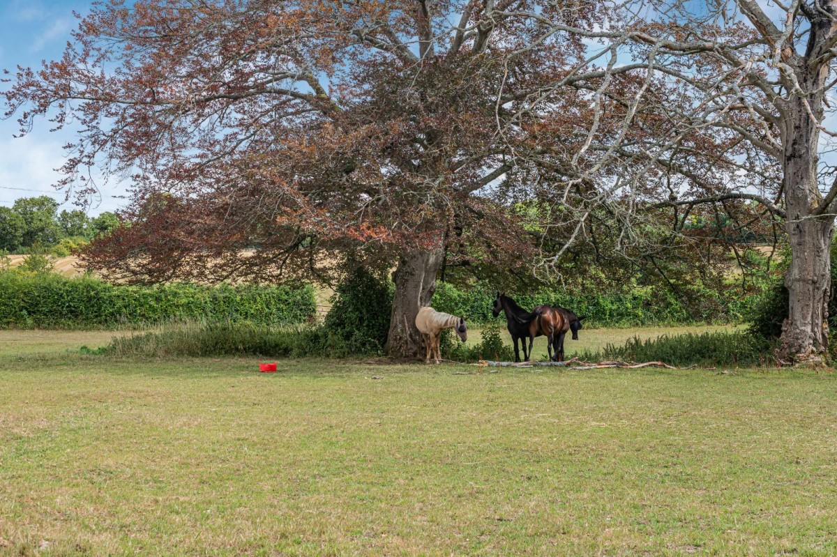 The wider holding includes a detached two-bedroom groom’s cottage, set beside the stable block, yard and substantial hay barn, reinforcing the property’s strong equestrian appeal.