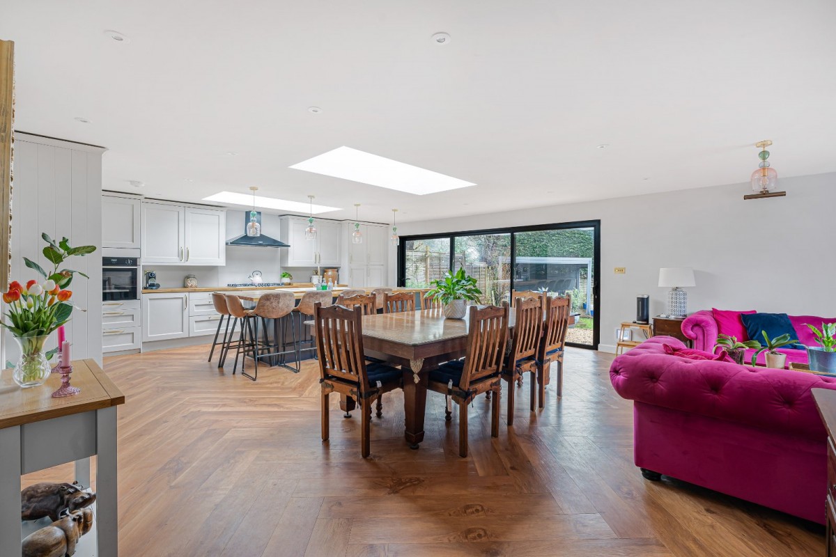 The heart of the home is the outstanding open-plan kitchen, dining and family space, extending to approximately 600–700 sq ft. Beautifully designed and impeccably finished, this impressive room is ideal for entertaining and perfectly suited to busy family life. Doors open directly onto the gardens, creating a seamless connection between inside and out while enhancing the wonderful sense of privacy and seclusion.