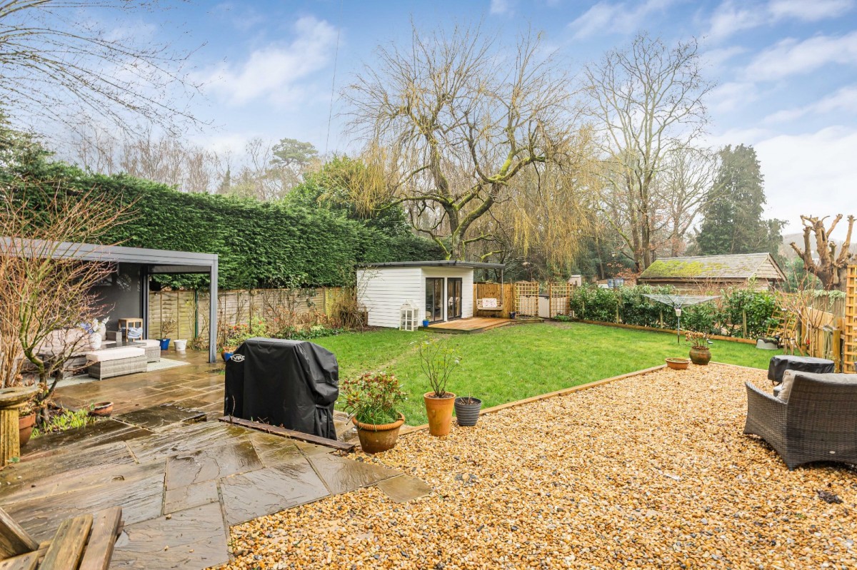 Externally, the gardens provide a peaceful and private setting. In addition to the annexe accommodation, there is a second substantial outbuilding currently arranged as a home office — a generous space complete with power, lighting and Wi-Fi connectivity, ready for immediate remote working. This building could equally serve as a gym or additional family space, further enhancing the property’s exceptional versatility.