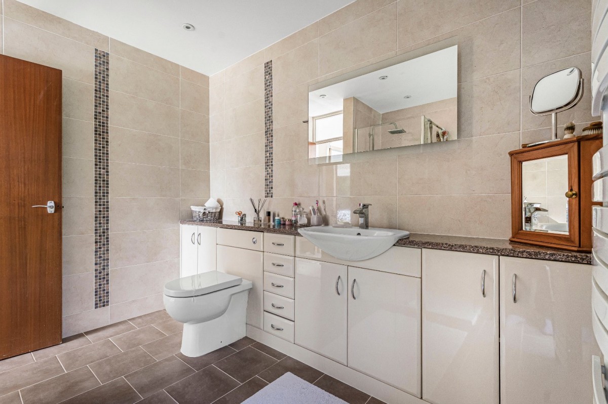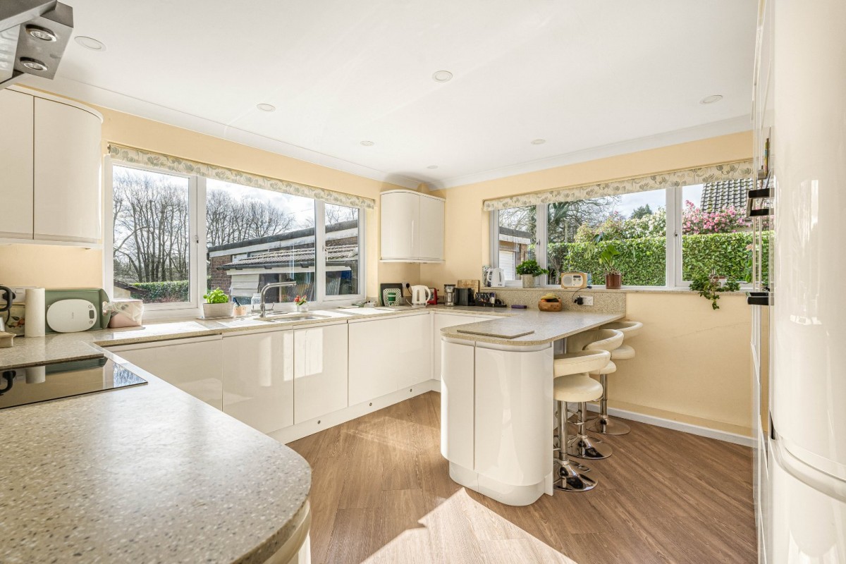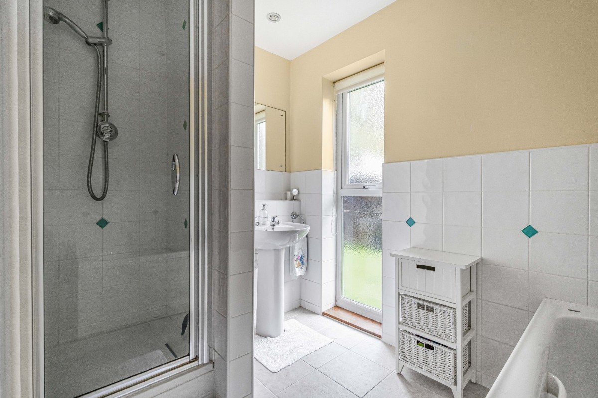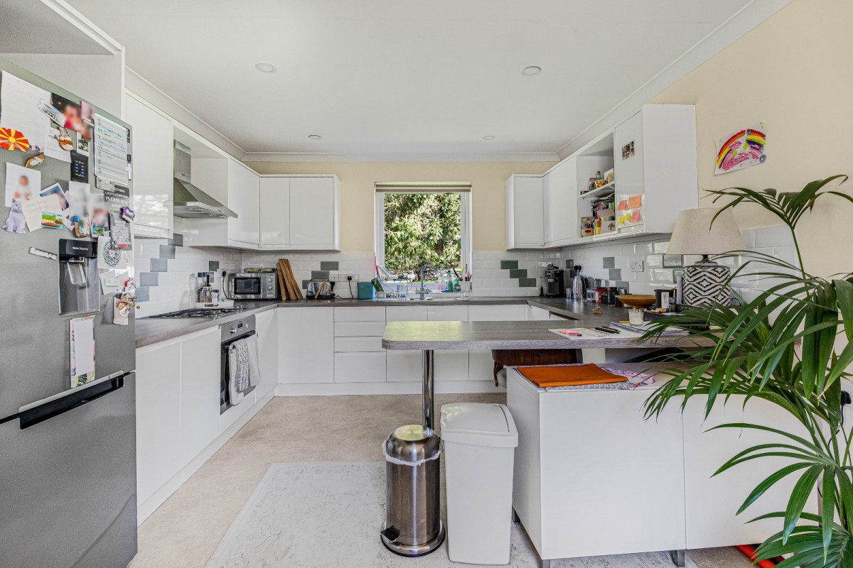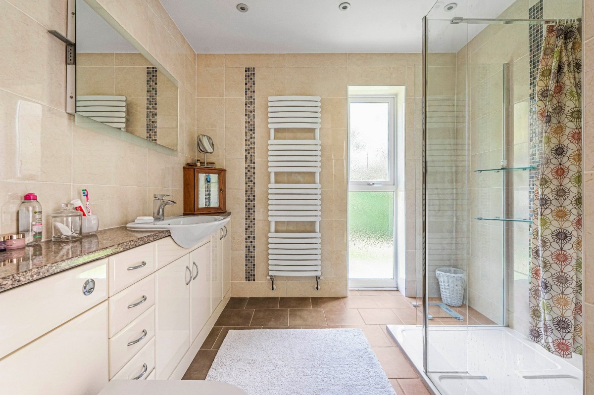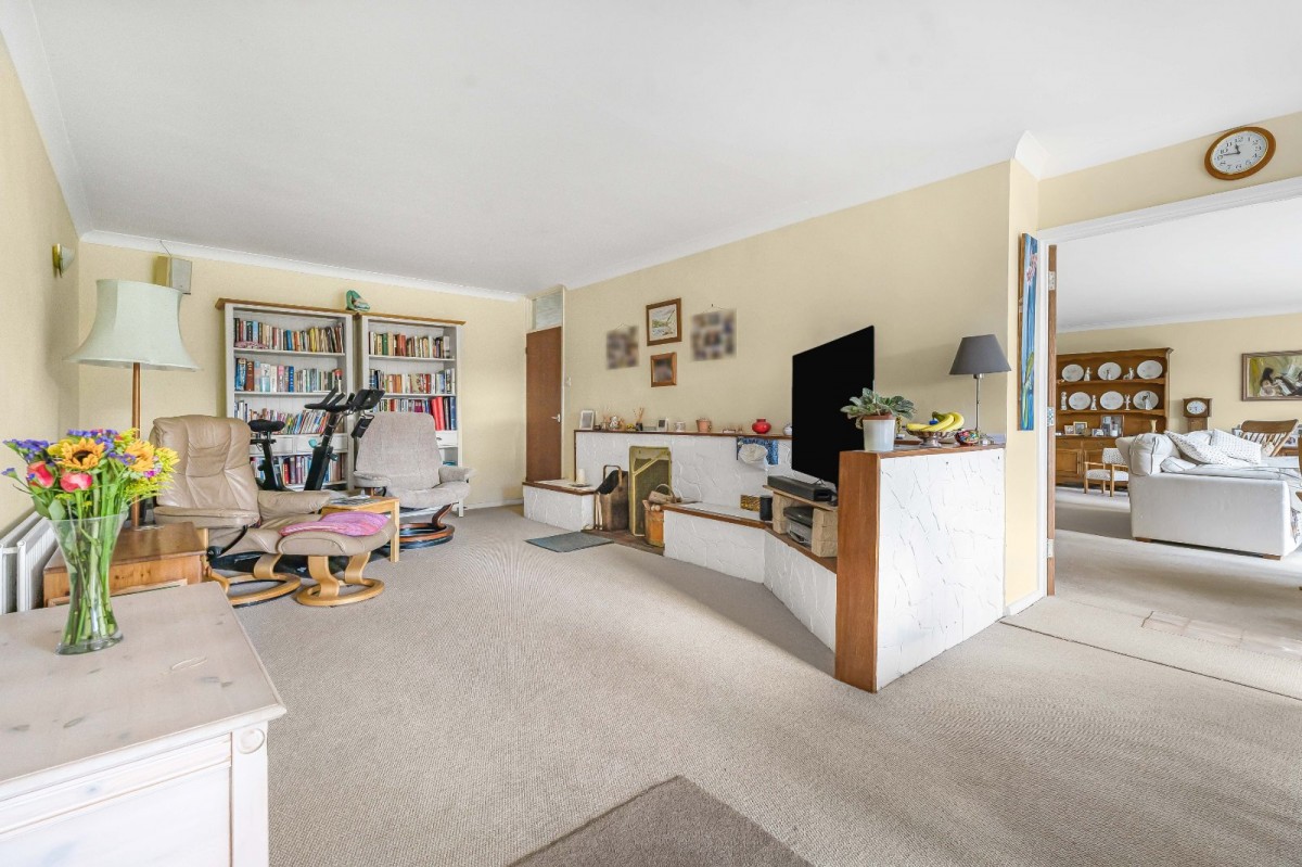 The principal bungalow extends to approximately 2,639 sq ft and offers vast, adaptable accommodation with up to five bedrooms. The living space is particularly generous, including a substantial drawing room, a separate sitting room, and a large family/dining room accessed from the refitted kitchen — creating a wonderful hub for everyday living and entertaining. Unusually, the main house also benefits from a second kitchen, effectively forming a self-contained wing within the primary footprint, ideal for dependent relatives, older children, guests, or home-working arrangements. A variety of bath and shower rooms serve the bedrooms, including refitted ensuite facilities and a family bathroom, further enhancing the flexibility on offer.